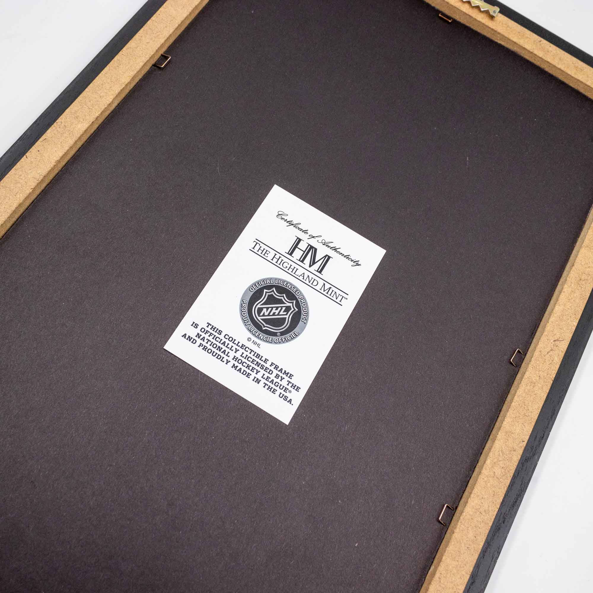 Auf der Rückseite des Bilderrahmes befindet sich das Echtheitszertifikat. Es handelt sich um eine handnummerierte limitierte Auflage von nur 5.000 Stück und ist eine absolute Bereicherung für jedes Eishockey Fan-Cave.