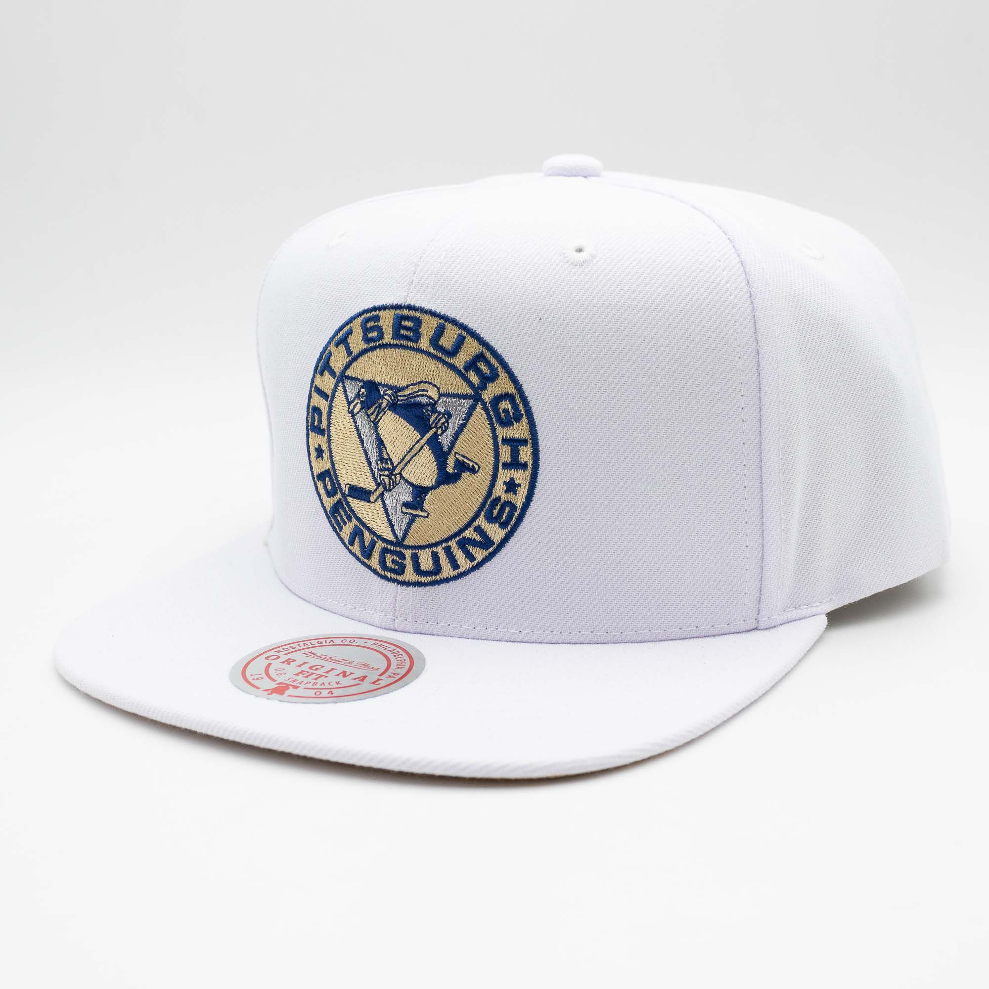 Mitchell & Ness NHL Original Fit Eishockey Snapback Cap von deinen Pittsburgh Penguins im weißen Winter White Design mit hochwertig aufgesticktem Side Patch.
