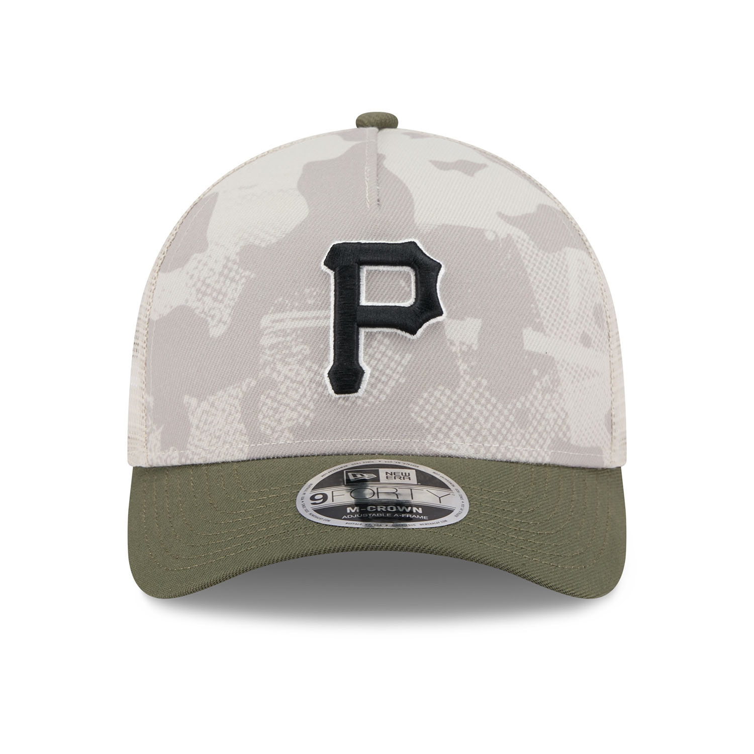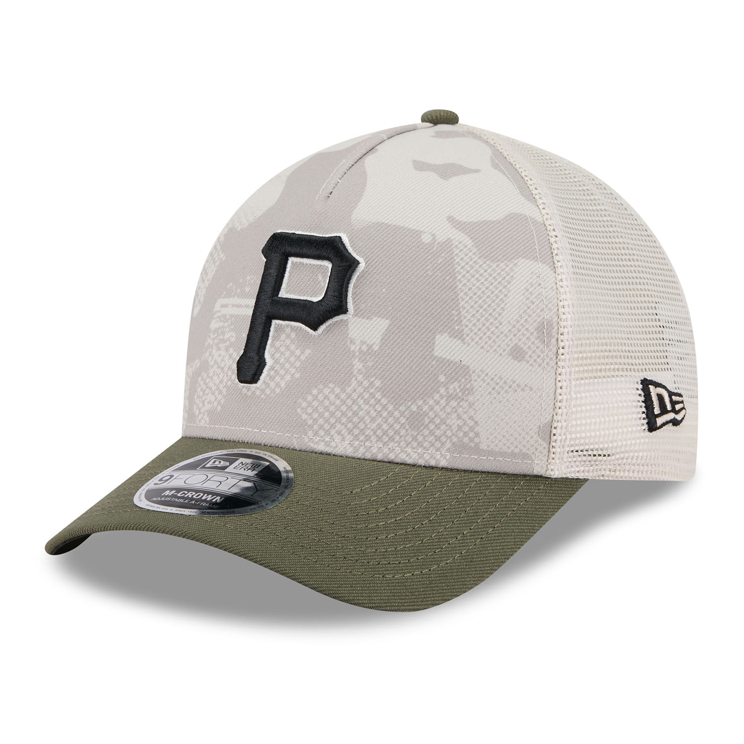 New Era Baseball Snapback Trucker Cap von deinen Pittsburgh Pirates im 9FORTY M-Crown A-Frame Style aus der 2025 MLB Armed Forces Day Kampagne.