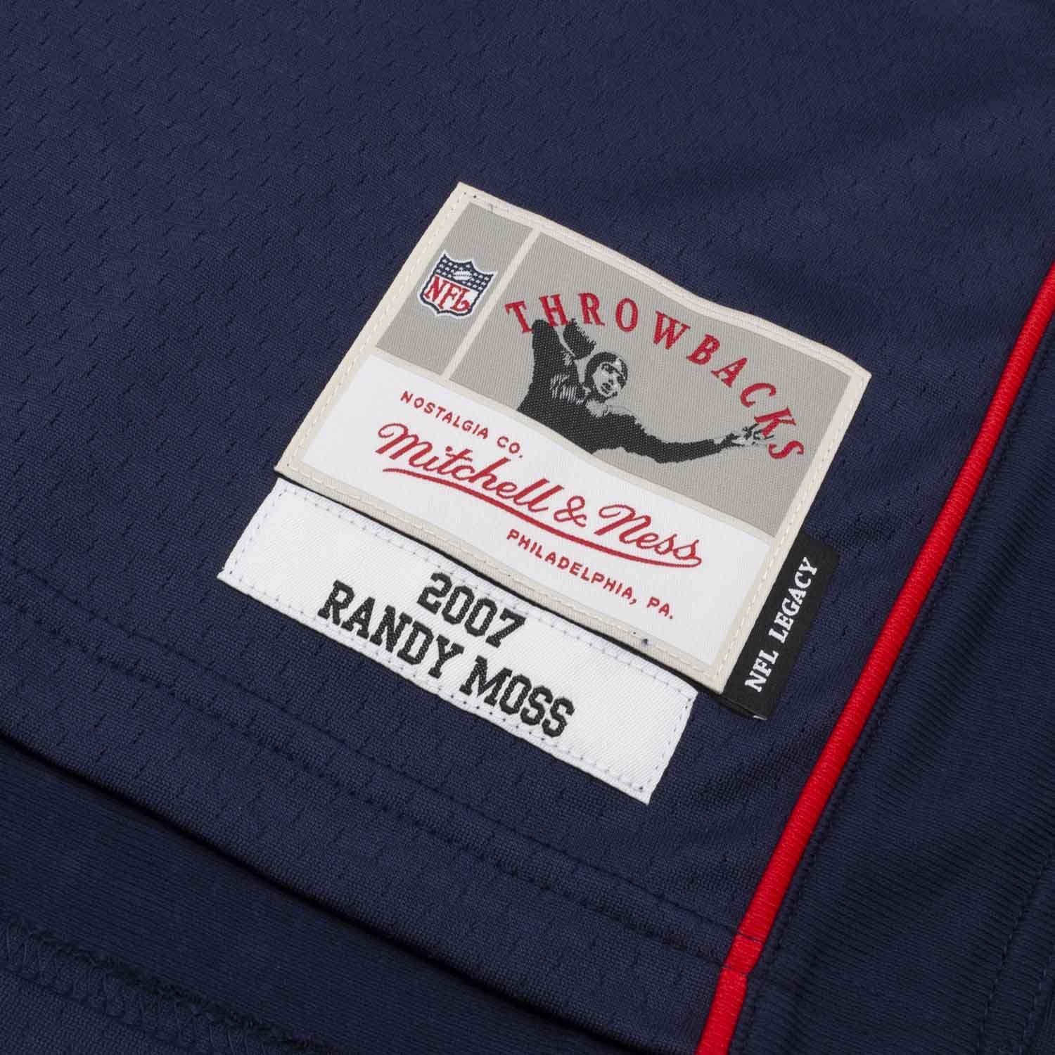 Mitchell & Ness NFL Herren American Football Trikot von Randy Moss, Wide Receiver Legende der New England Patriots im 2007 Legacy Throwback Design.