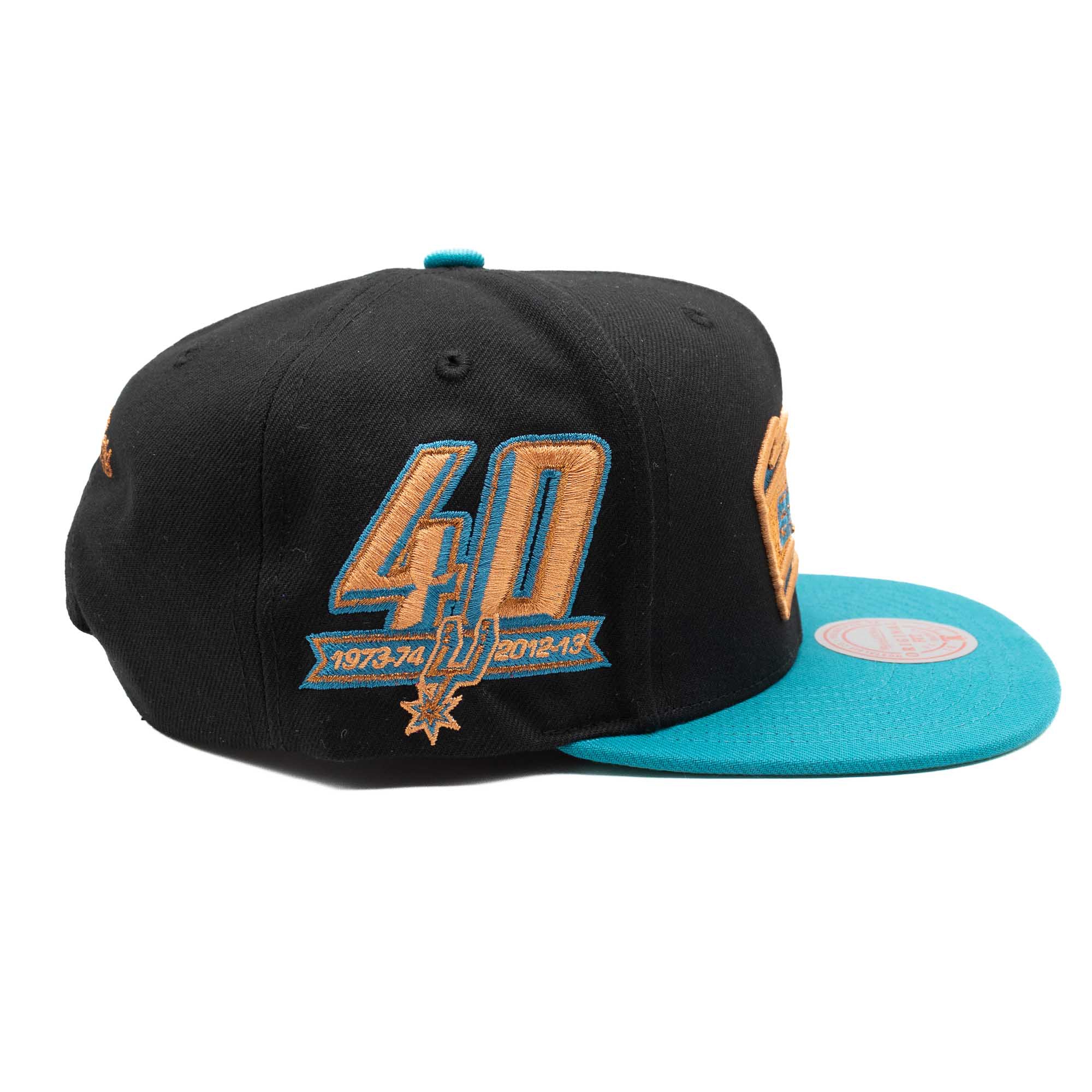 Mitchell & Ness NBA Original Fit Basketball Snapback Cap von deinen San Antonio Spurs im zweifarbigen Make Cents Style mit Celebrating 40 Years Side Patch.