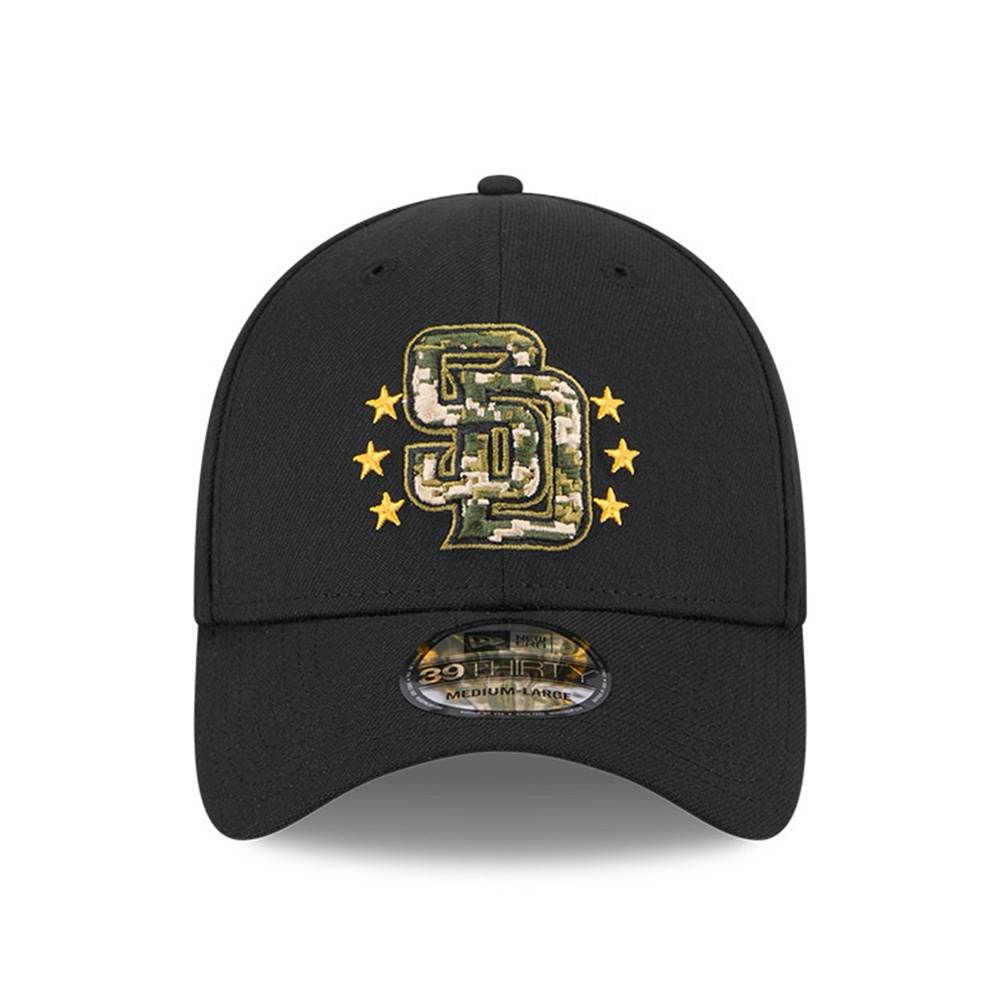 San Diego Padres 2024 MLB Armed Forces New Era 39THIRTY Flex Cap Schwarz