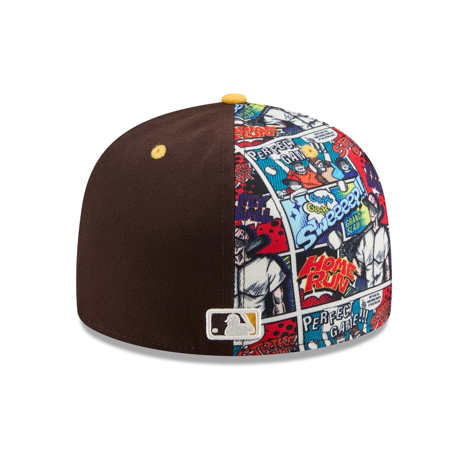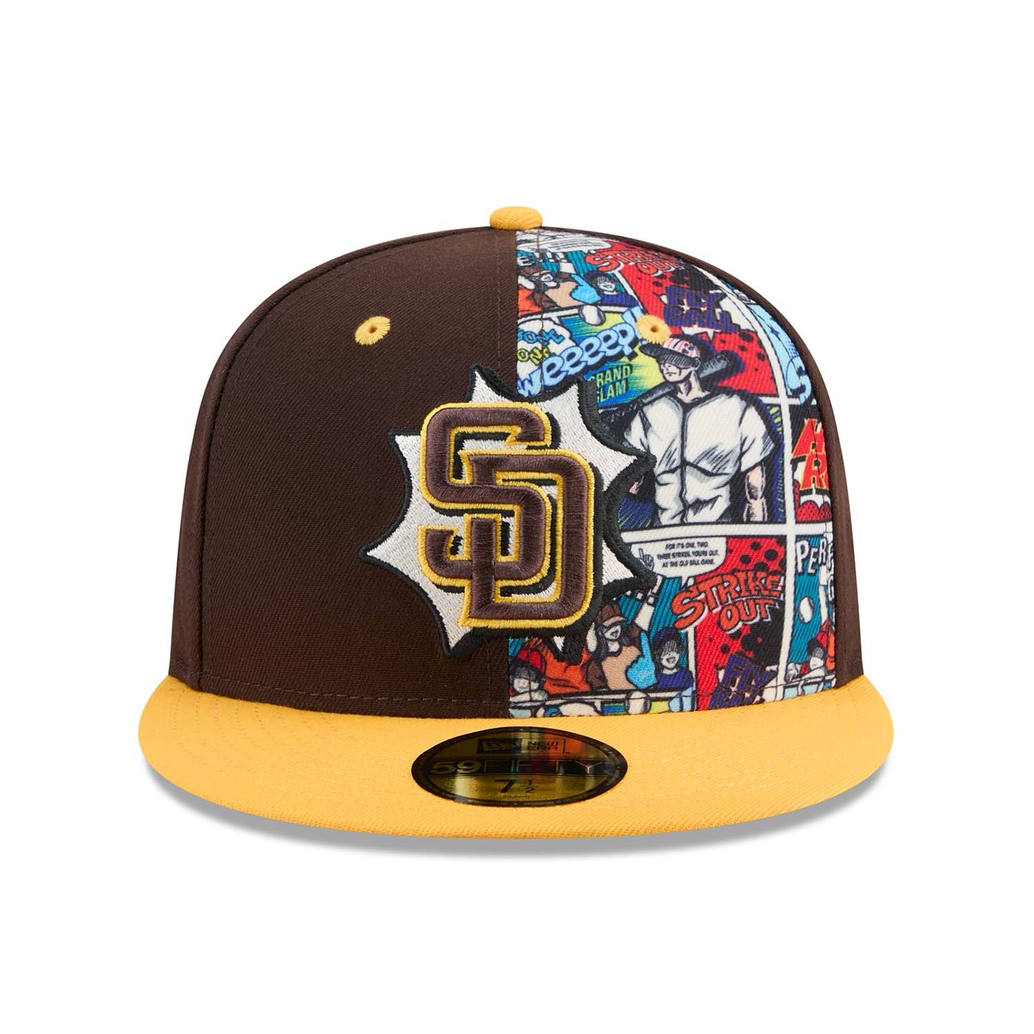 - San Diego Padres Logo in 3D-Stick auf der Front - platziert auf einem kontrastreichen Allover-Comic-Print im Stil klassischer Graphic Novels.