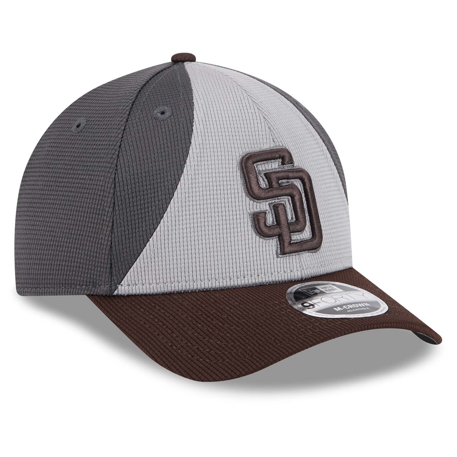 New Era Baseball Adjustable Snapback Cap im 9FORTY M-Crown Style von deinen San Diego Padres aus der grauen Colorway 2025 MLB Batting Practice Kollektion.