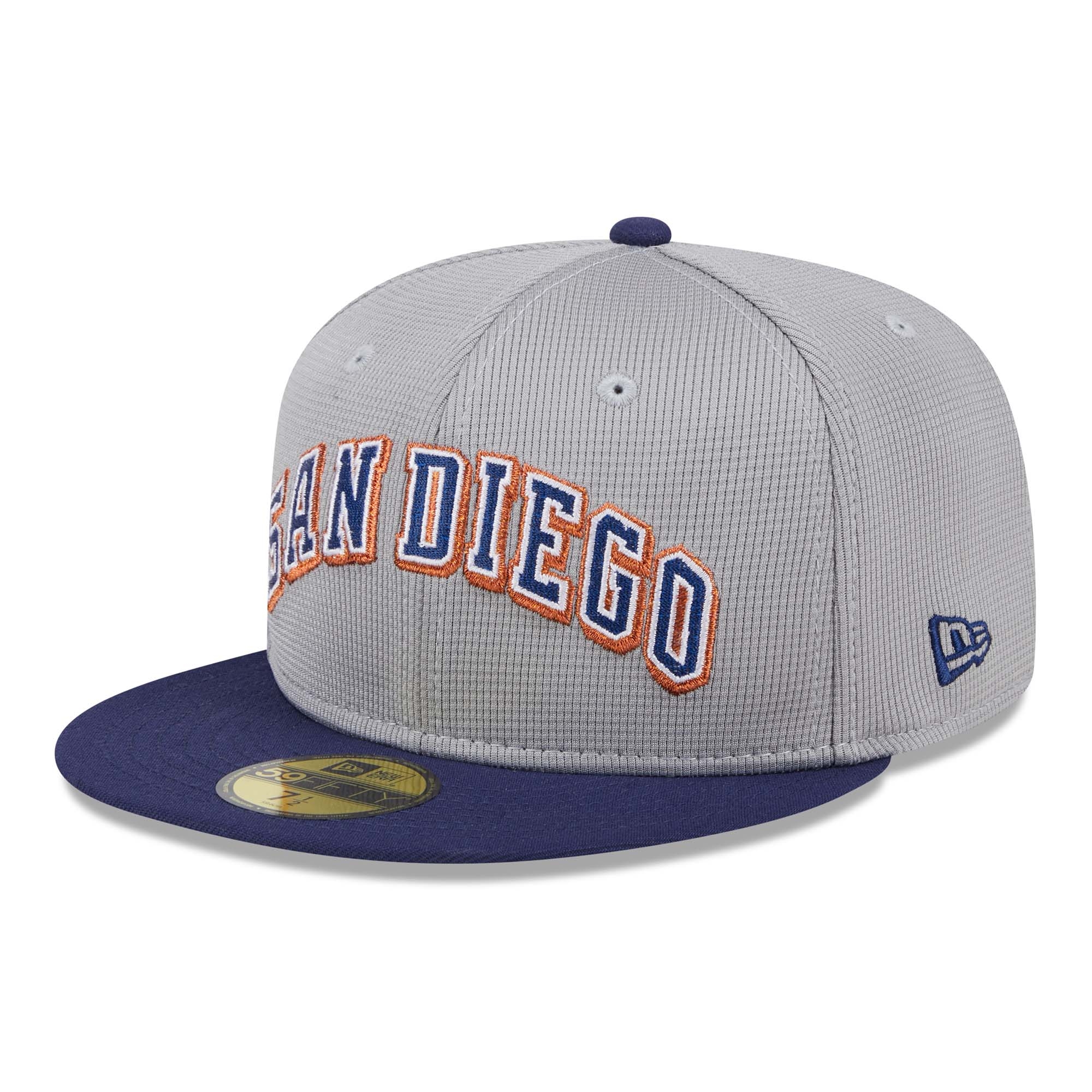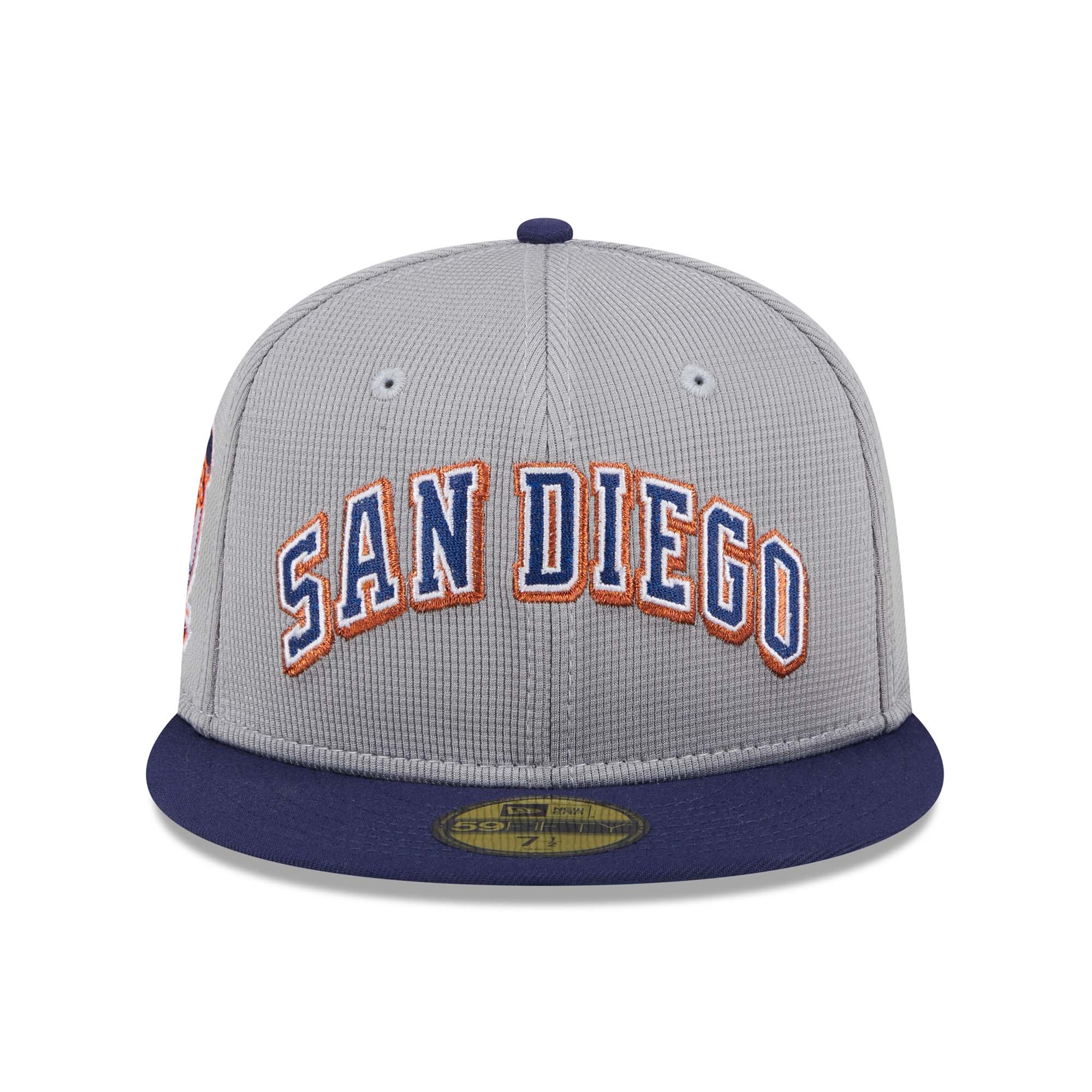New Era Baseball 59FIFTY Fitted Cap von deinen San Diego Padres im grauen Pivot Mesh Design mit Anniversary Side Patch.