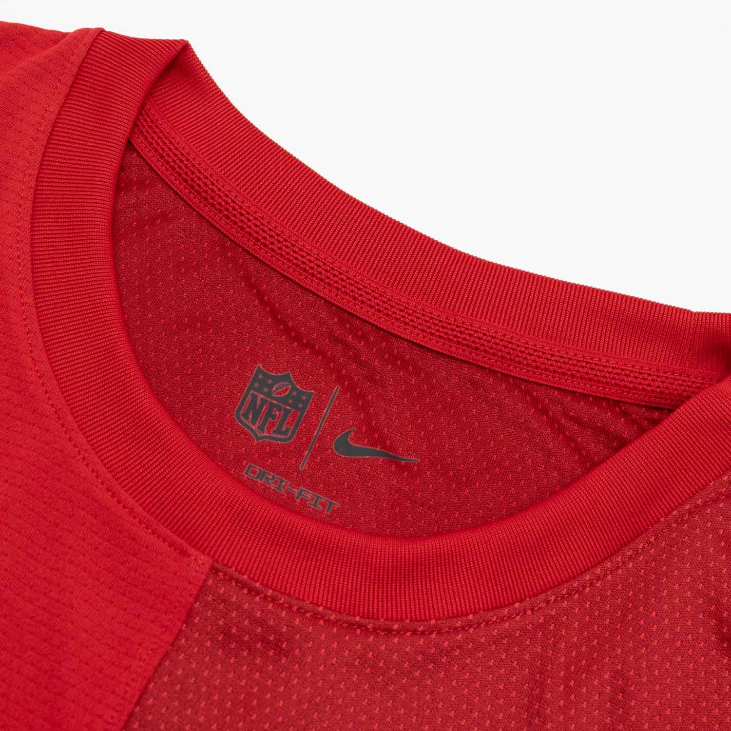 Offizieller Sideline-Style der 2025 NFL-Saison: Das San Francisco 49ers Dri-FIT Coach UV Top von Nike vereint sportlichen Look mit funktionellem Schutz - exakt wie von den Coaches und Teammitgliedern der 49ers an der Seitenlinie getragen.Das kurzärmlige Shirt besteht aus leichtem, schweißableitendem Dri-FIT-Material und bietet durch integrierten UV-Schutz zuverlässige Unterstützung bei starker Sonneneinstrahlung. Mesh-Einsätze sorgen für gezielte Belüftung, während das offizielle Teamlogo auf der Brust den authentischen NFL-Auftritt unterstreicht.