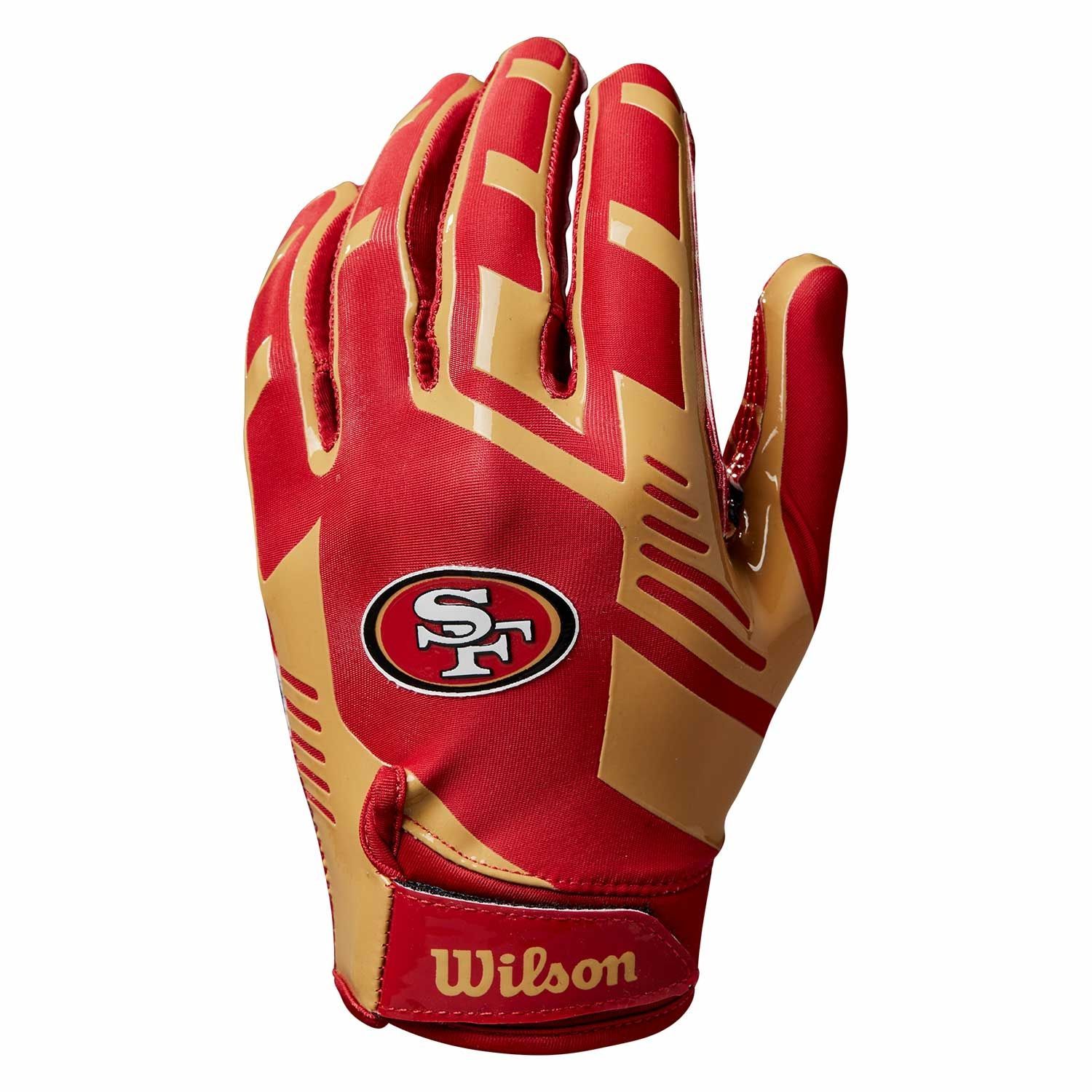 Wilson NFL Youth American Football Stretch-Fit Receivers Gloves / Handschuhe mit dem Logo der San Francisco 49ers.