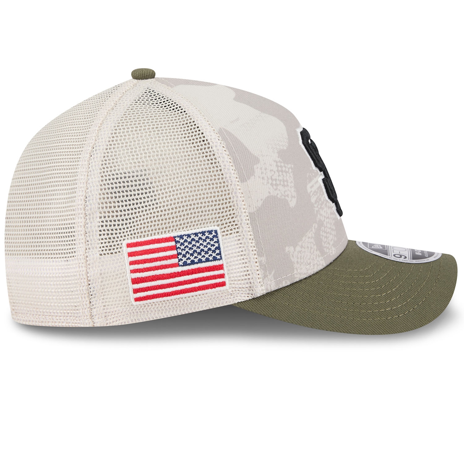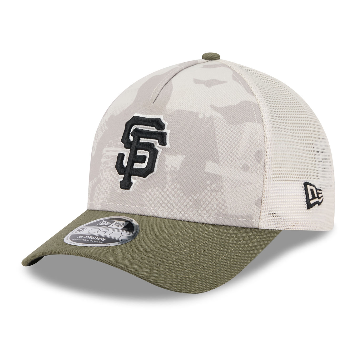 New Era Baseball Snapback Trucker Cap von deinen San Francisco Giants im 9FORTY M-Crown A-Frame Style aus der 2025 MLB Armed Forces Day Kampagne.