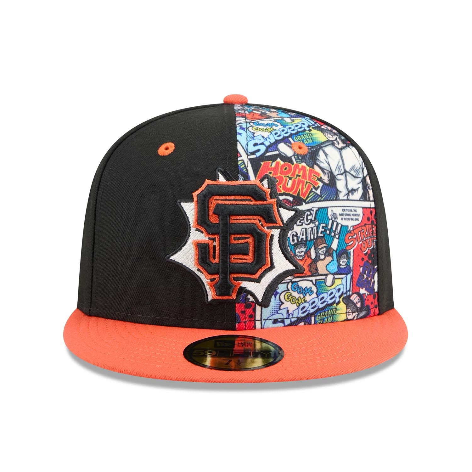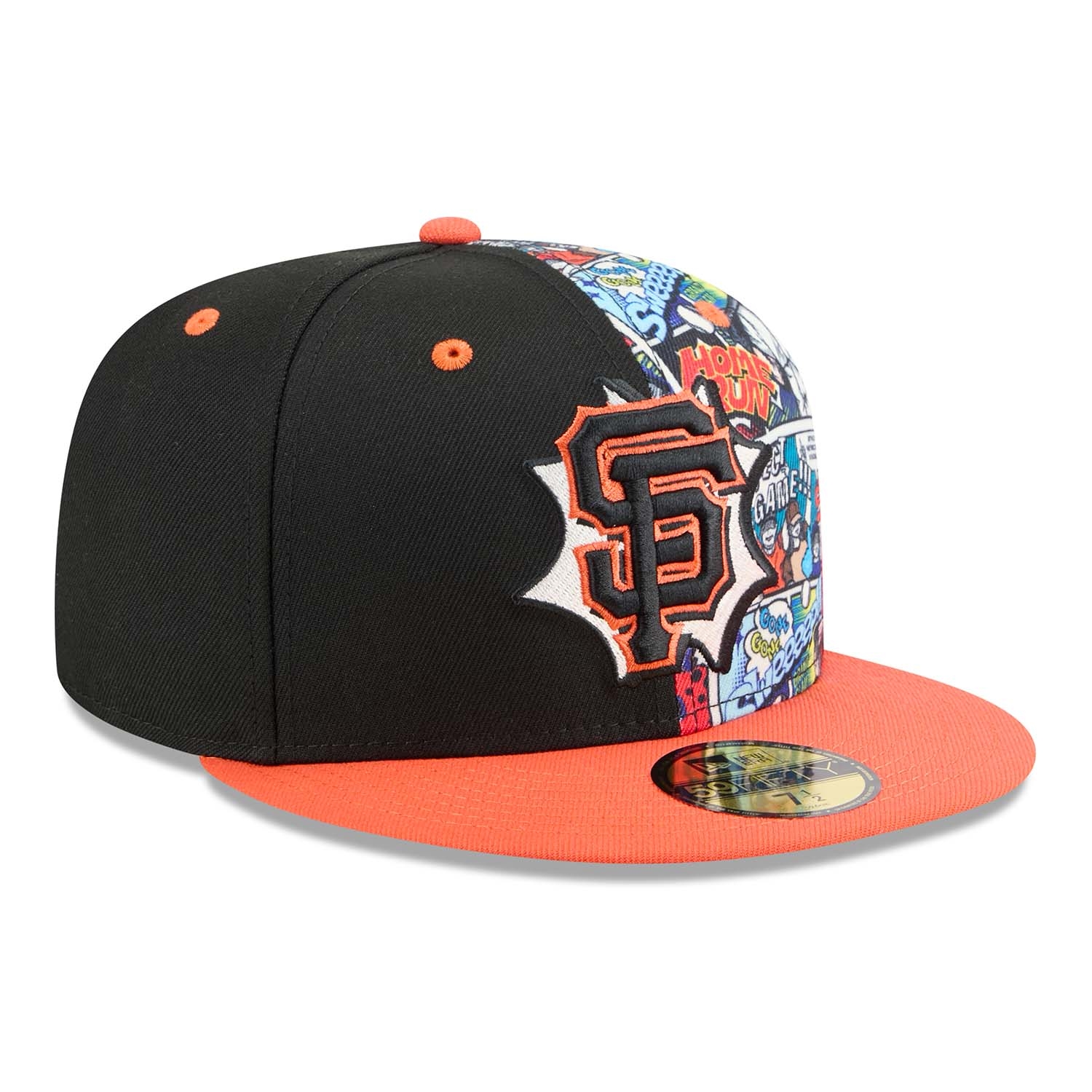 - San Francisco Giants Logo in 3D-Stick auf der Front - platziert auf einem kontrastreichen Allover-Comic-Print im Stil klassischer Graphic Novels.