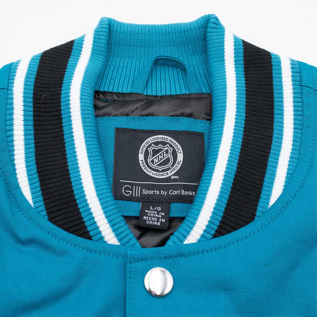 G-III Sports by Carl Banks NHL Herren Varsity Jacke im hochwertigen Tailback Style deiner San Jose Sharks.