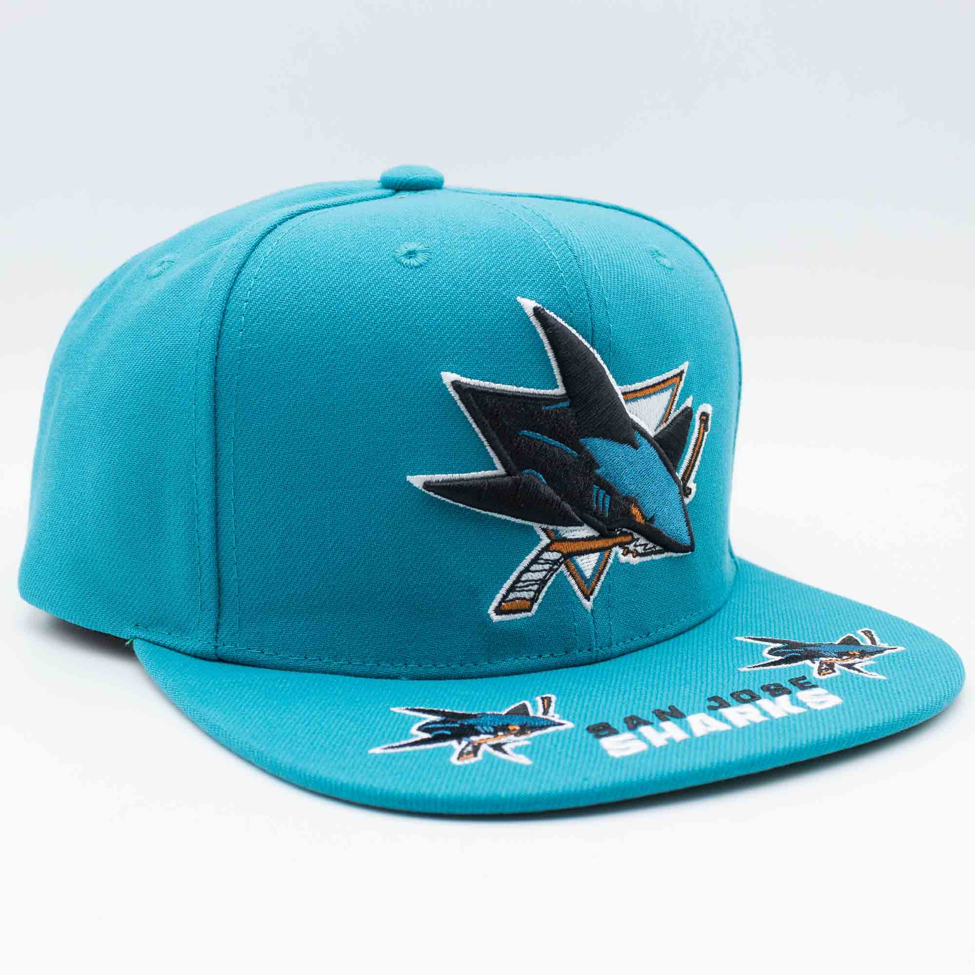 San Jose Sharks Hat Trick Mitchell & Ness Snapback NHL Cap Türkis