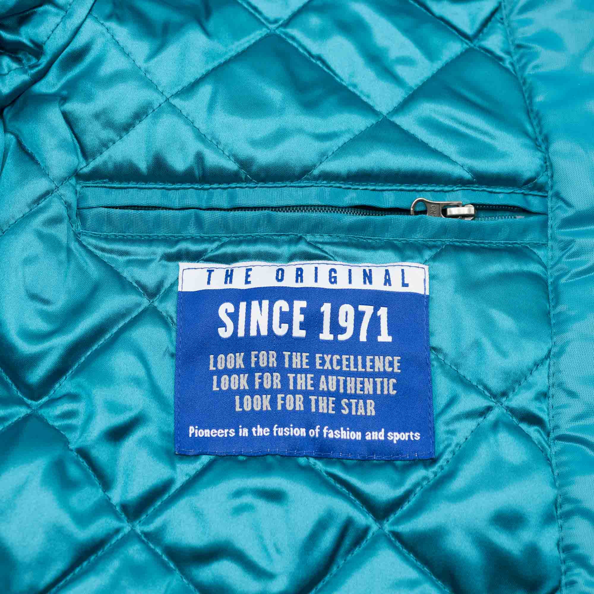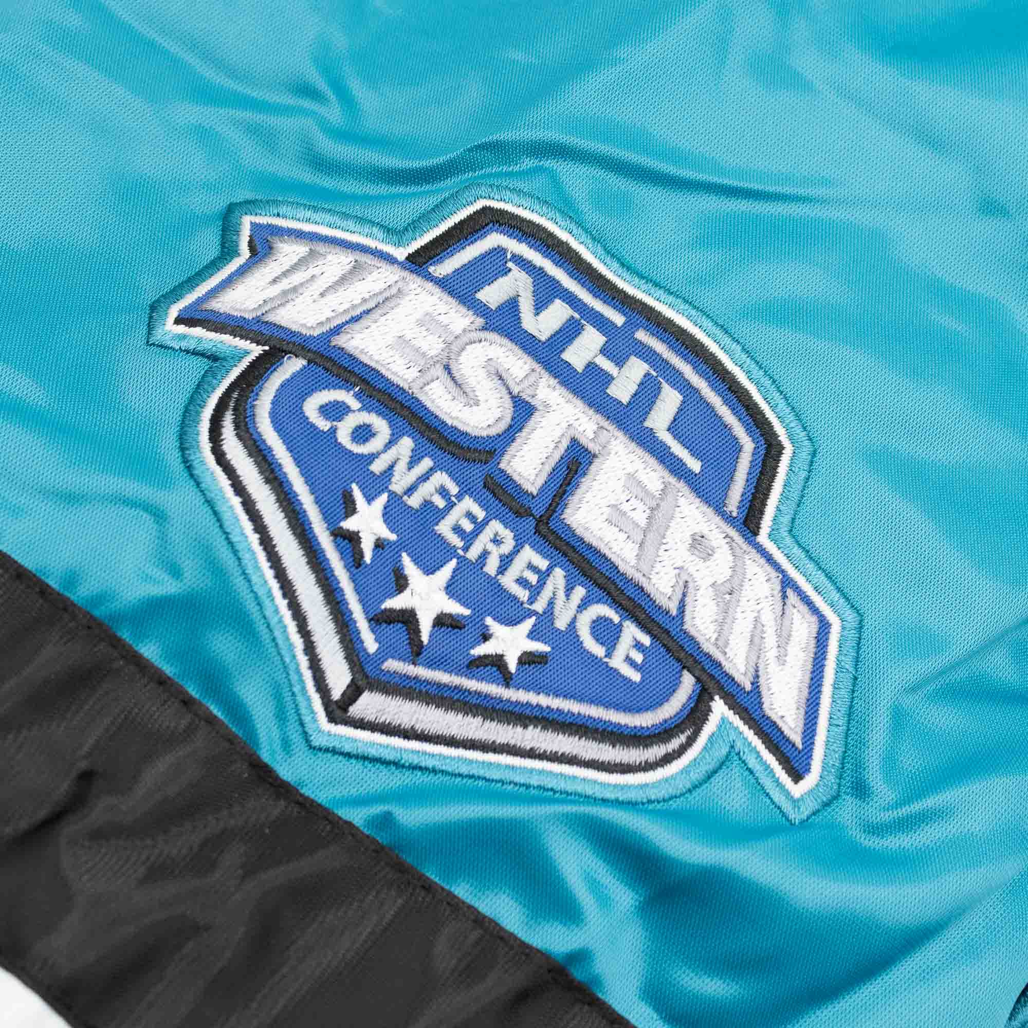 Diese Starter Varsity Satin Jacket kommt im modernen US-Sportdesign und überzeugt mit den komplett aufgestickten Teamapplikationen und den farblich abgesetzten Streifen auf den Schultern. Die Front der Jacke prägt der große San Jose Sharks Team-Schriftzug, die Rückseite ziert das übergroße Teamlogo. Abgerundet wird das einmalige Starter-Design mit dem Conference Logo auf dem rechten Ärmel. Das legendäre Starter Logo befindet sich auf dem linken Ärmel als hochwertiger Stick, sowie im Kragen und auf der Innentasche als aufgenähtes Label.