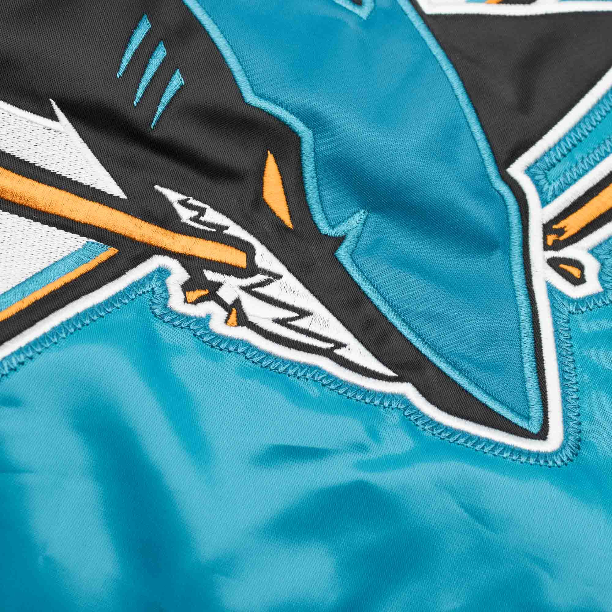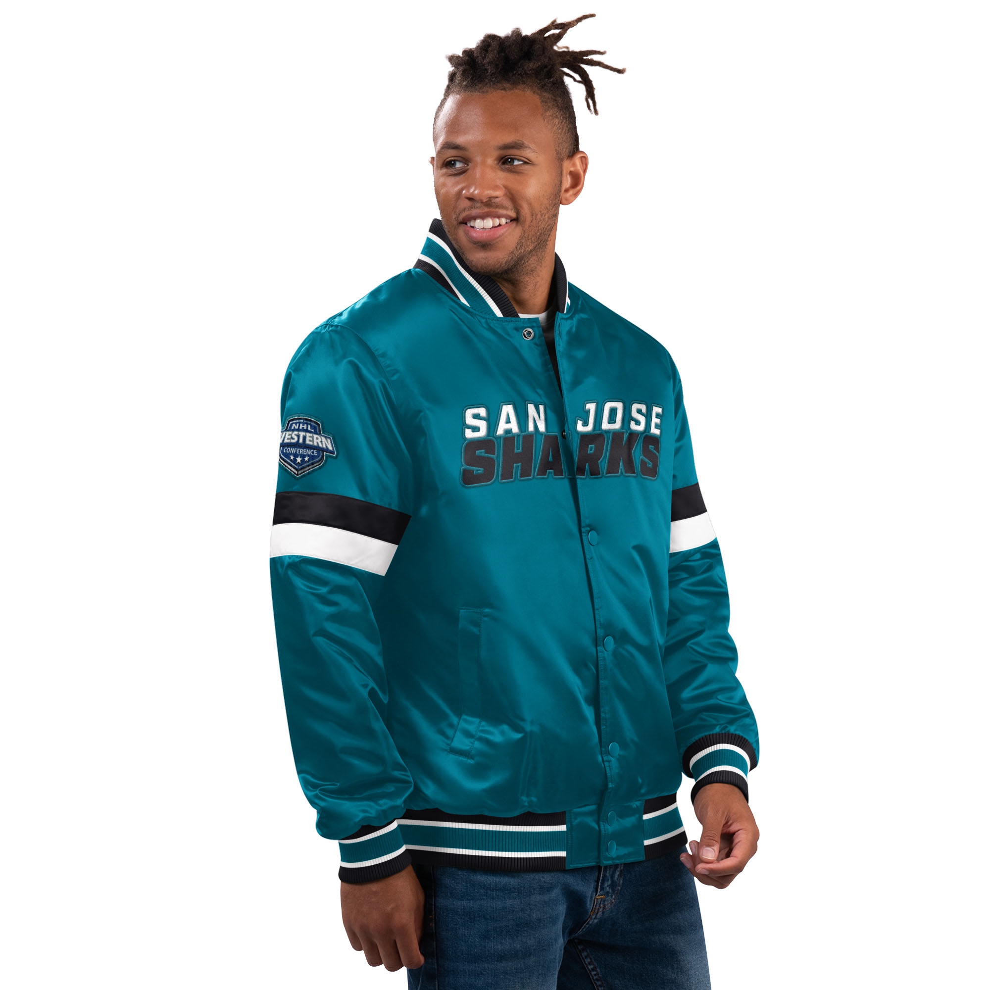 Starter NHL Herren Varsity Satin Jacke im Home Game Style deiner San Jose Sharks.