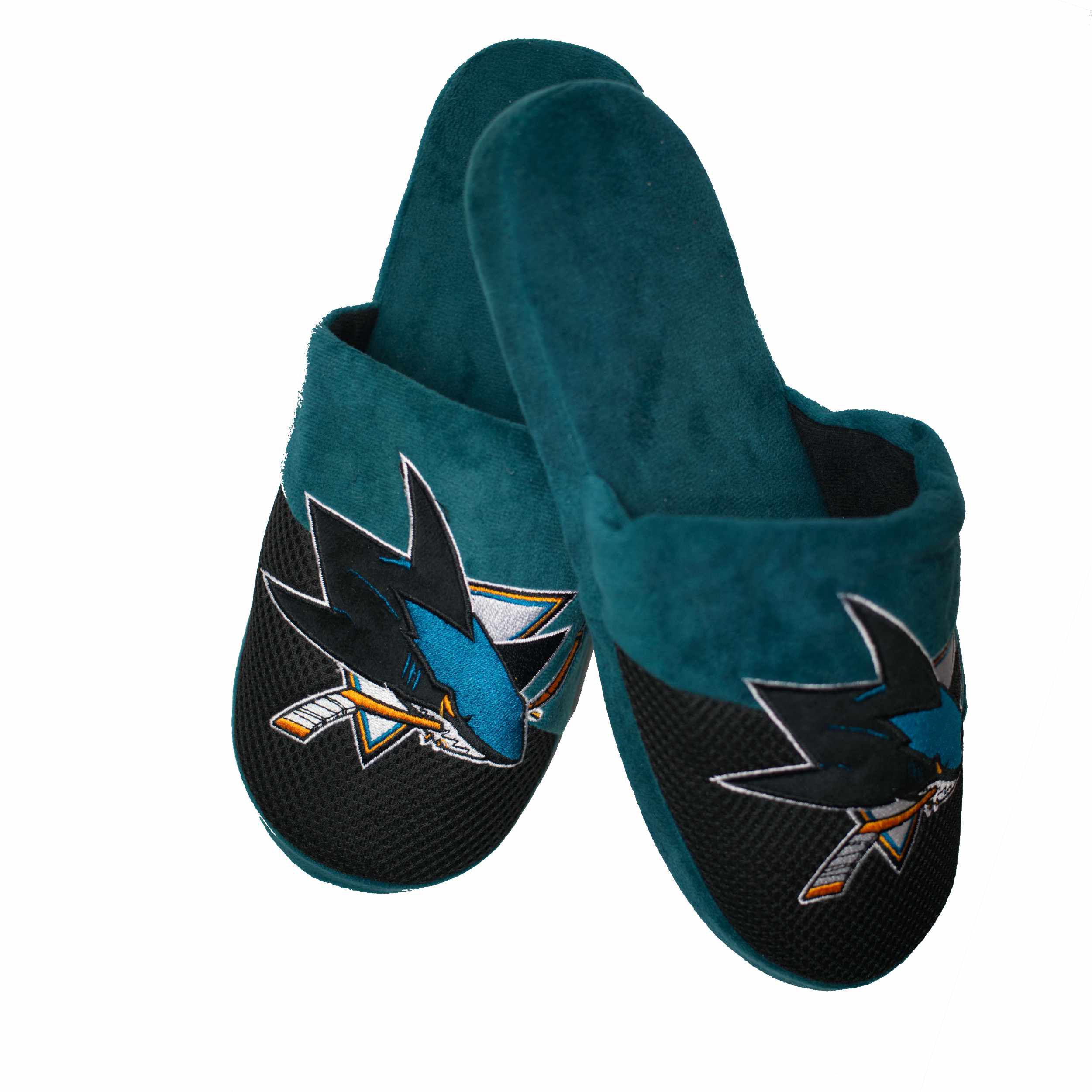 Forever Collectibles NHL Herren Slip-On Hausschuhe von deinen San Jose Sharks im Staycation Style.