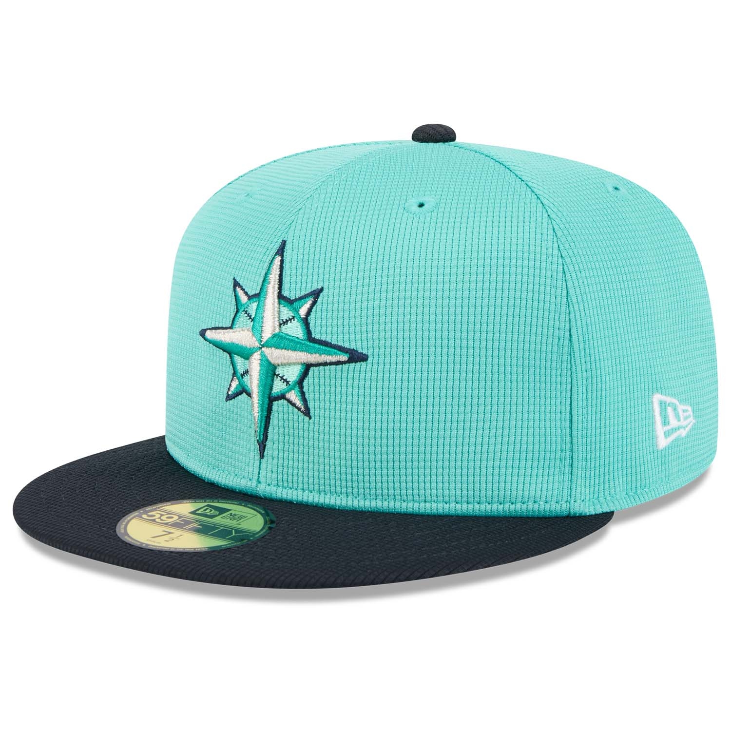 New Era Fitted Baseball Cap von deinen Seattle Mariners im 59FIFTY Style aus der offiziellen 2025 MLB Spring Training Kollektion.