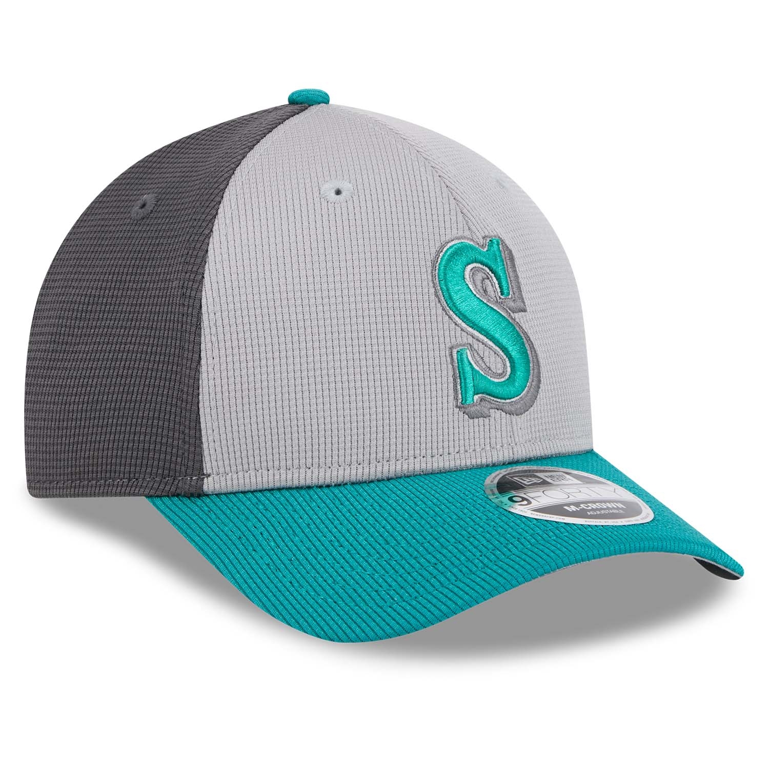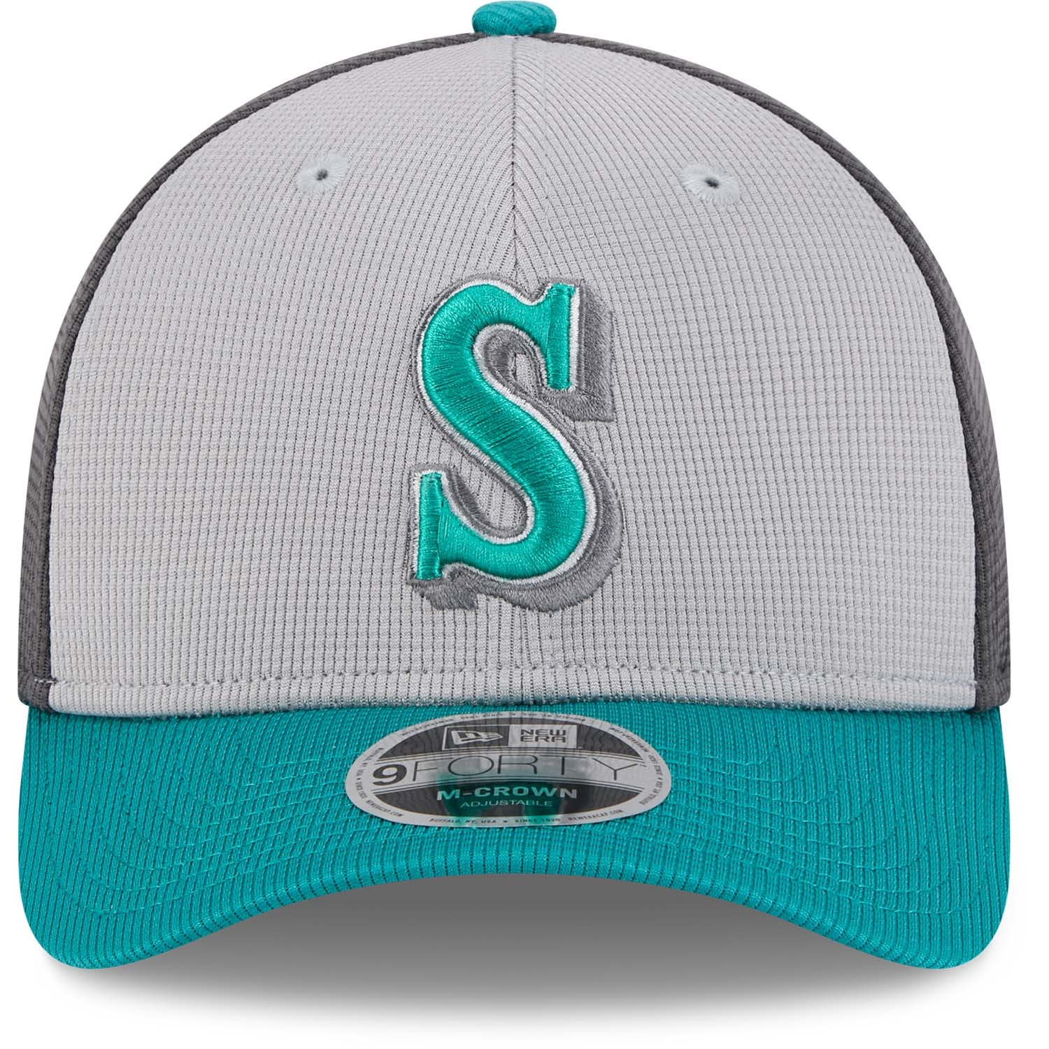 New Era Baseball Adjustable Snapback Cap von deinen Seattle Mariners im 9FORTY M-Crown Style aus der grauen Colorway 2025 MLB Batting Practice Kollektion.
