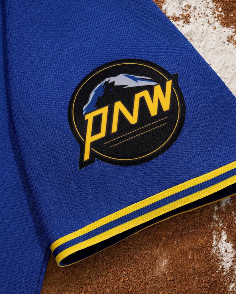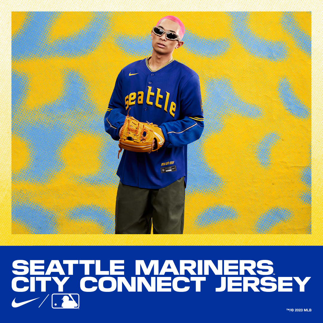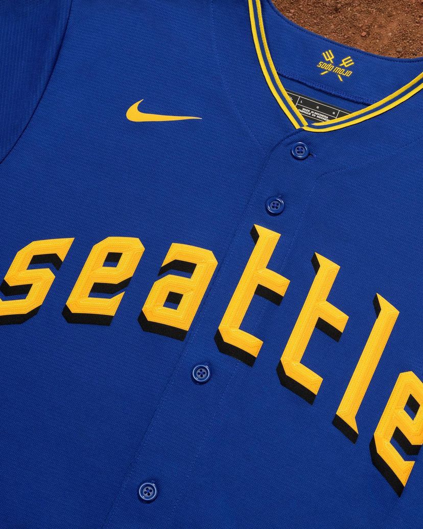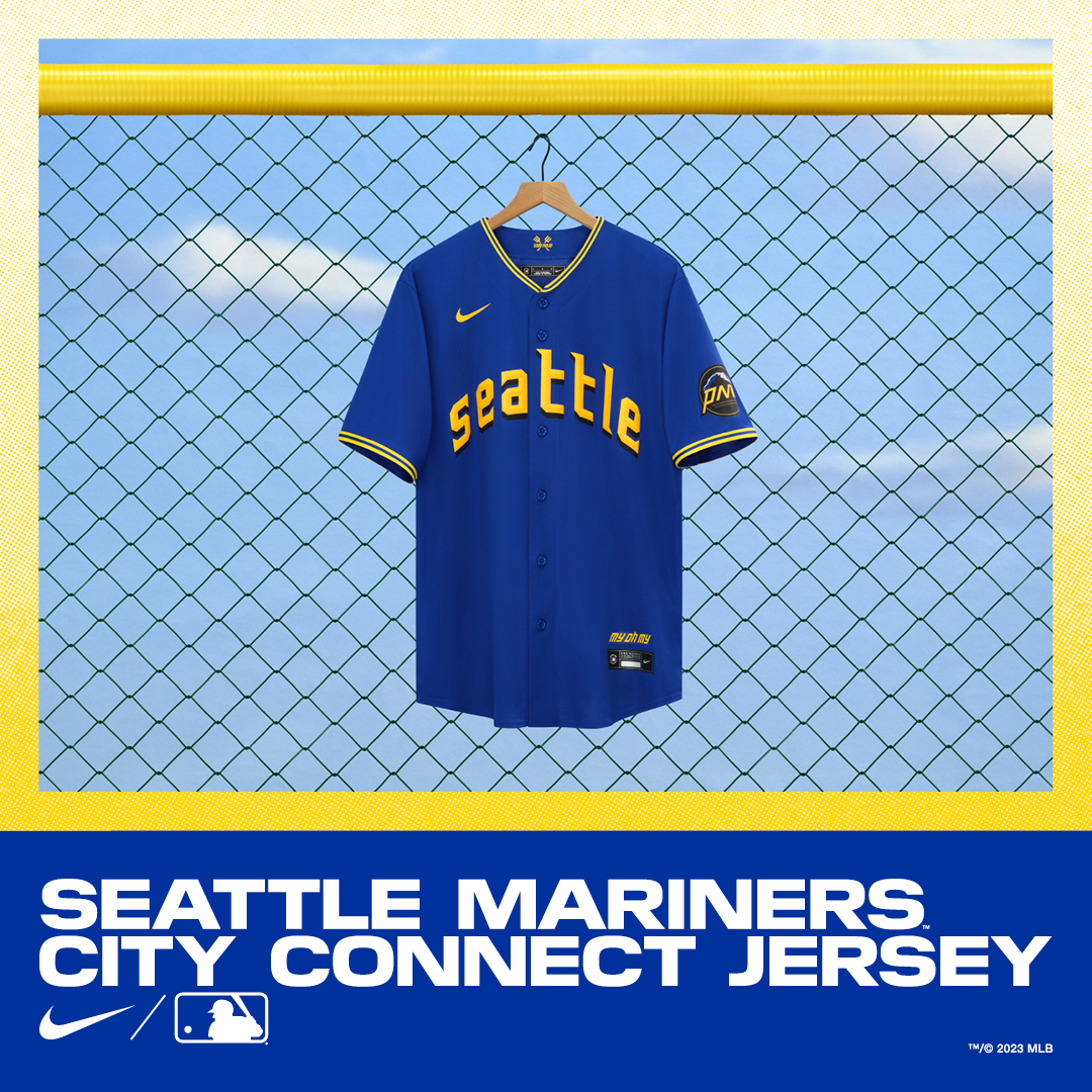 "My Oh My" ziert den unteren Teil des Trikots, während ein stilisierter "PNW"-Ärmelaufnäher den Status der Mariners als Botschafter der Region würdigt.