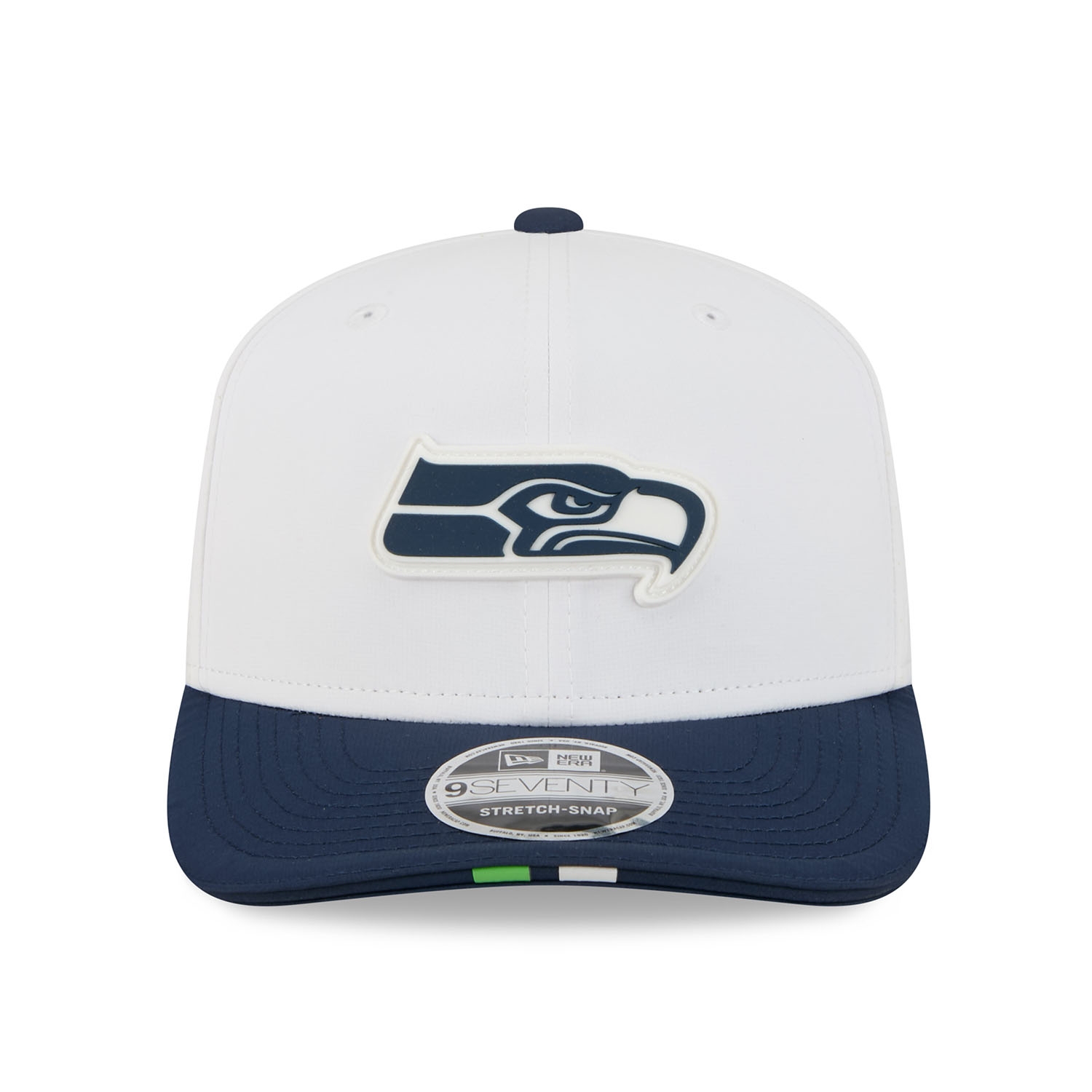 New Era American Football Cap deiner Seattle Seahawks Stretch-Snap 9SEVENTY Cap aus der offiziellen 2025 NFL Training Camp Kollektion.