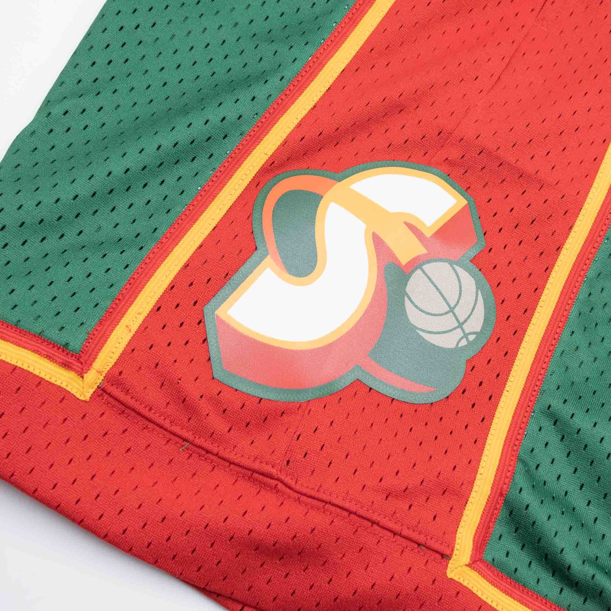 Mitchell & Ness Herren Basketball 1995-96 Swingman Shorts von den Seattle SuperSonics in der grün-roten Hardwood Classics Variante.