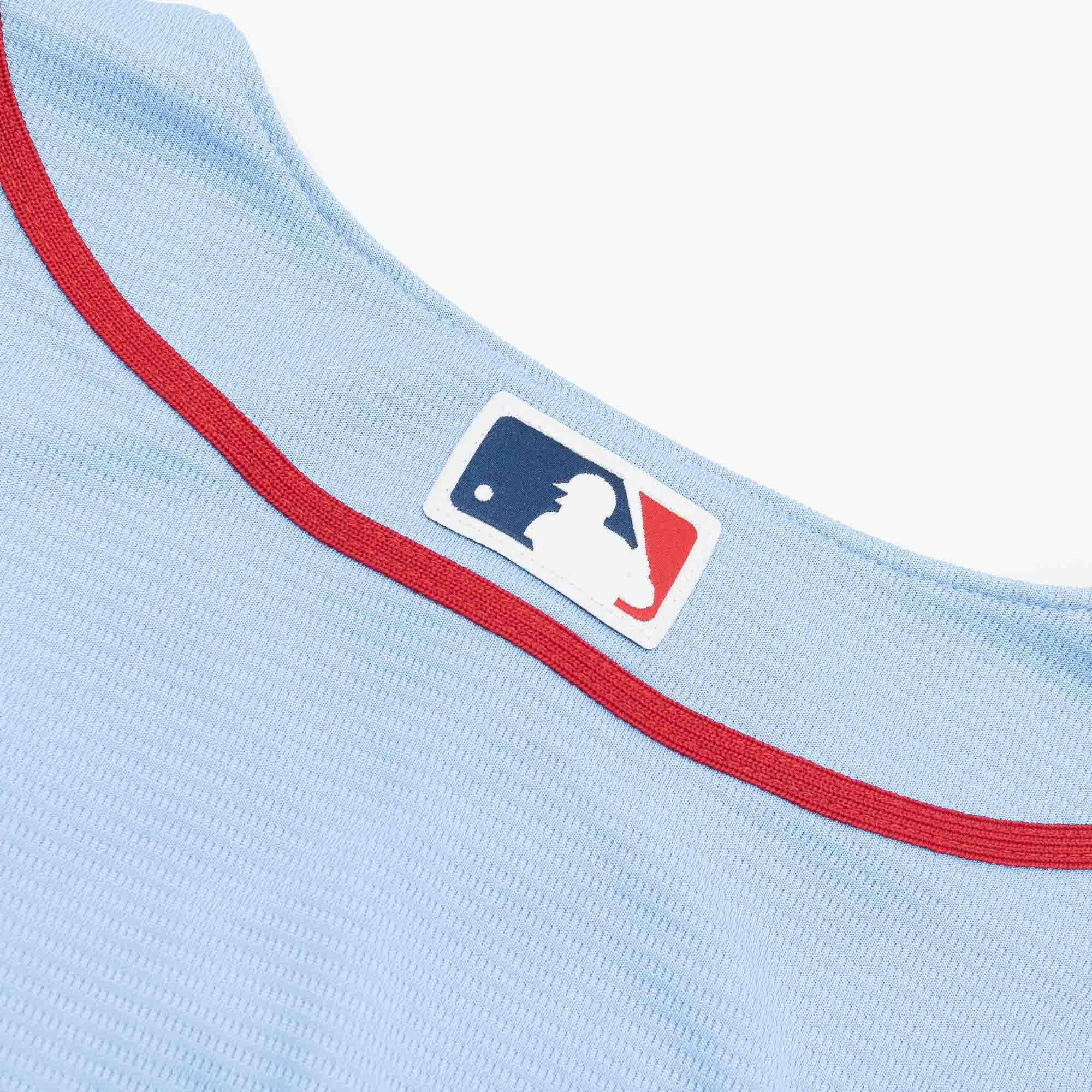 Zeige deinen St. Louis Cardinals Support mit diesem Nike Replica Team-Trikot vom offiziellen Ausrüster der Major League Baseball. Dieses Nike MLB Trikot ist im Design der originalen St. Louis-Spieltrikots gehalten und ähnelt den originalen On-Field Trikots in fast allen Belangen. Die Vorderseite ist mit dem St. Louis Team-Schriftzug dekoriert (Twill-Patch-Thermodruck); auf der Rückseite ist das teamfarbene MLB-Logo direkt am Kragen aufgenäht.
