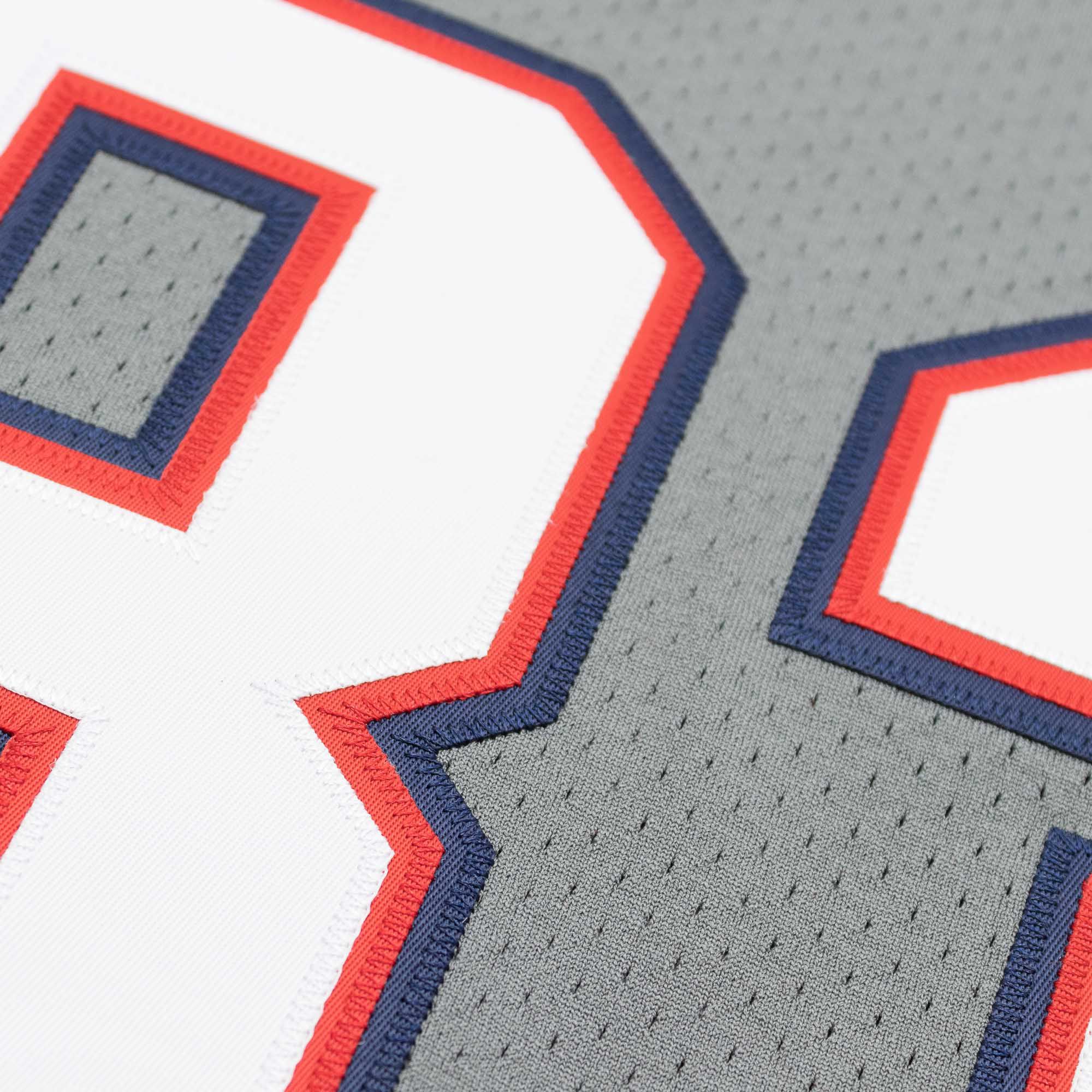 Authentisches NBA-Trikot im genauen Design der New Jersey Nets aus der Saison 1999-2000. Das Trikot entspricht den originalen On-Court Trikots der NBA-Profis aus dieser Ära. Alle Logos, Zahlen und Buchstaben sind hochwertig aufgenäht. Der Stoff ist extra schwer und robust, um dem Spielbetrieb standzuhalten. Der NEW JERSEY-Schriftzug, der Spielername (MARBURY) und die Nummern 33 sind hochwertig, in teilweise dreifacher Lage, aufgenäht. Das Mitchell & Ness Hardwood Classics Label am Saum ist ebenfalls aufgenäht, das NBA Logo ist aufgestickt. Auf der linken Brust ist der NBA Finals Patch aufgenäht. Die Mitchell & Ness NBA Trikots aus der Authentic Collection sind ein besonderes Must-Have für jeden Marbury-Fan und eine Erinnerung an die besten Spieler und Legenden dieses Sports!