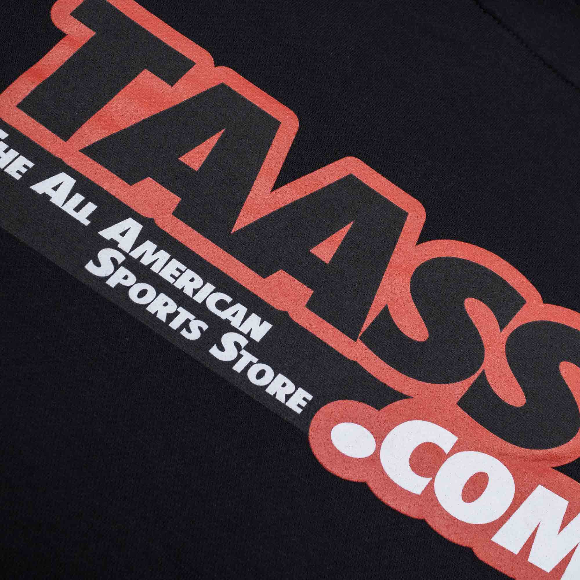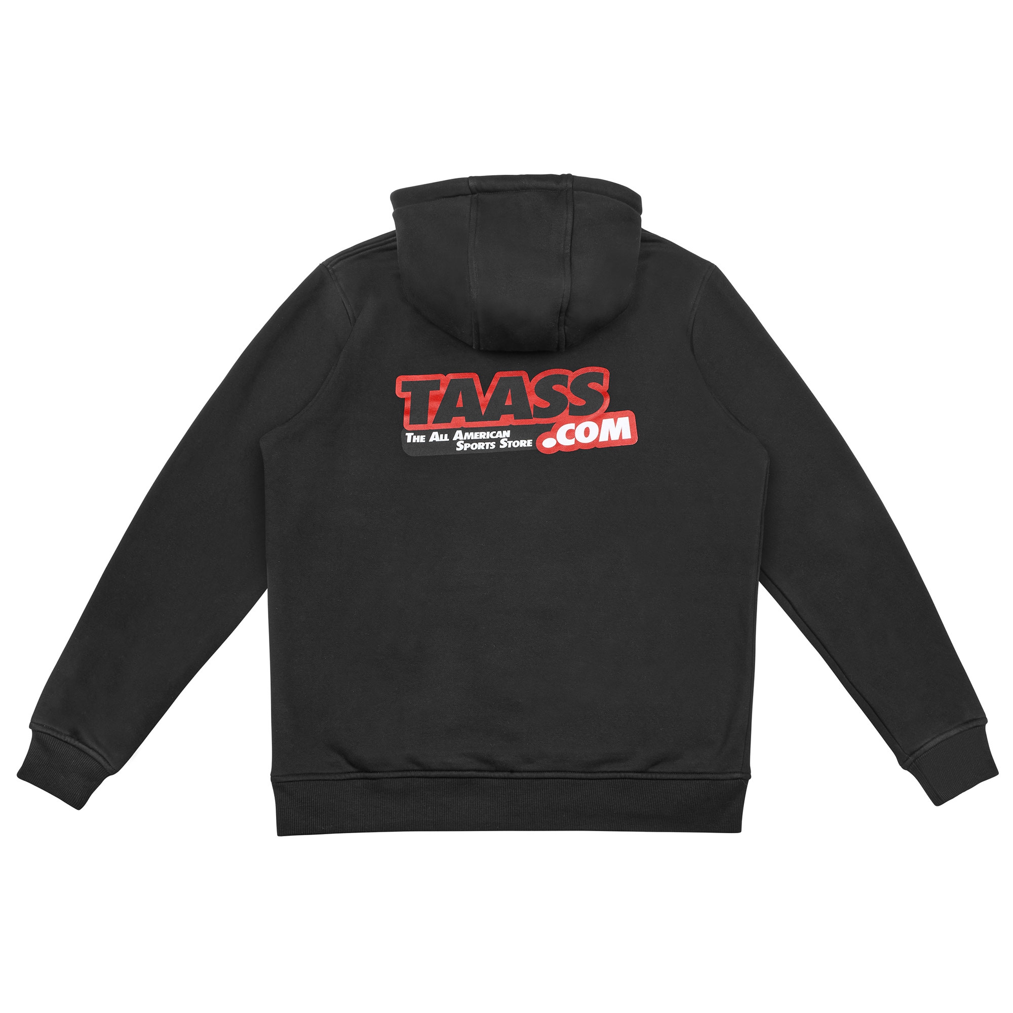 Werde Teil der TAASS.com Story mit diesem hochwertigen Logo Hoodie! Auf der linken Brust ist das ikonische TAASS.com - The All American Sports Store Logo hochwertig aufgedruckt. Der rot-schwarze Logodruck hebt sich deutlich vom schwarzen Hintergrund ab. Auf der Rückseite ist das ebenfalls das TAASS.com Logo riesig aufgedruckt. Der Hoodie ist sehr weich und lässt sich durch den hochwertig verarbeiteten Baumwoll-Polyester-Stoff angenehm tragen. Mit Kapuze, Kordelzug sowie Fronttasche hält dich der Pullover auch an kälteren Tagen warm.