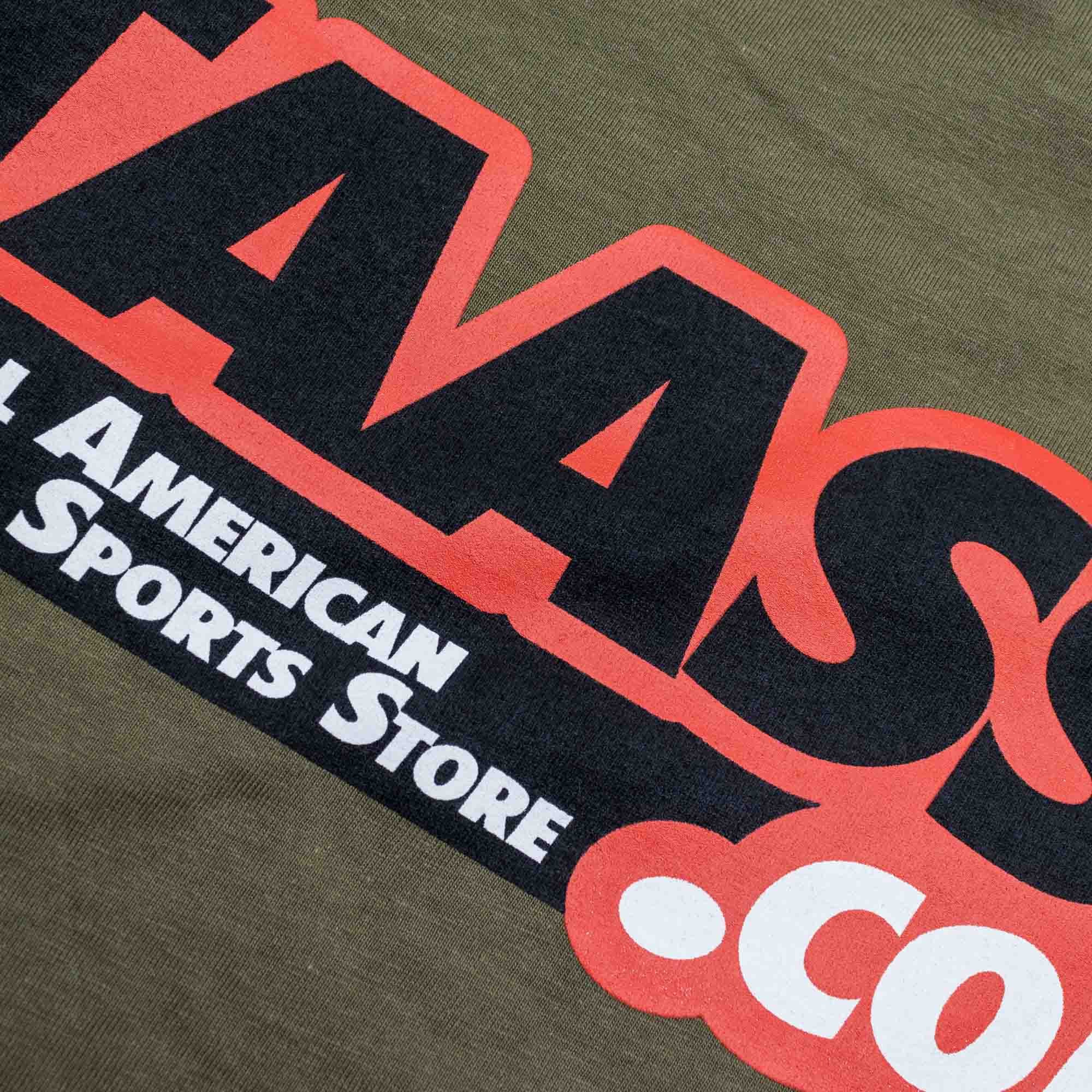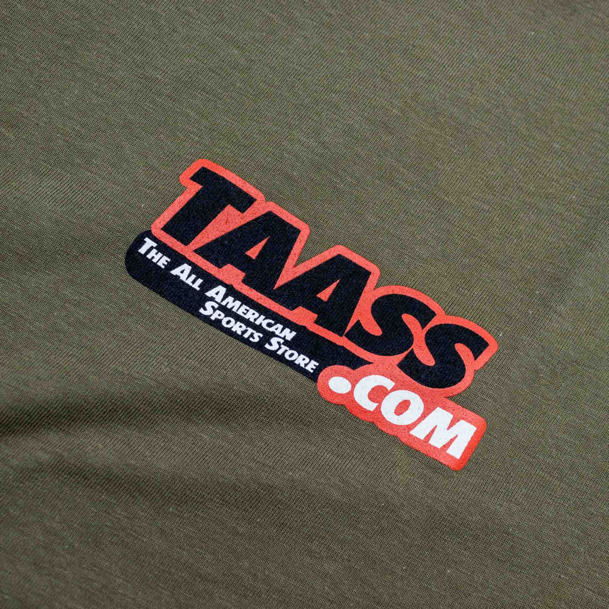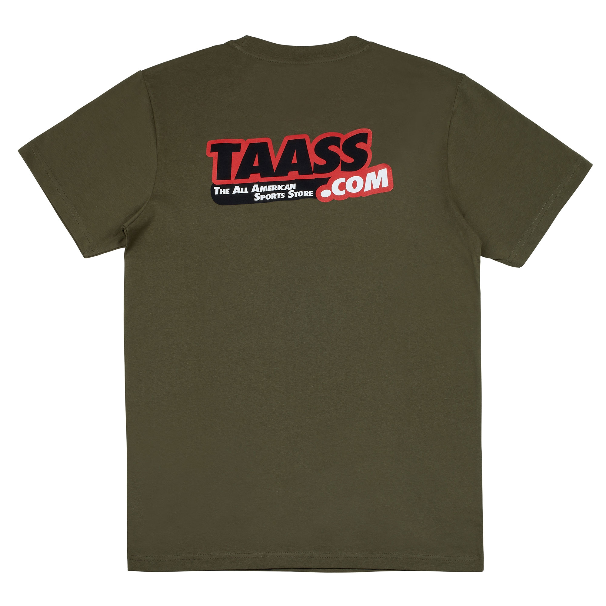 Werde Teil der TAASS.com Story mit diesem hochwertigen Logo Tee! Auf der linken Brust ist das ikonische TAASS.com - The All American Sports Store Logo hochwertig aufgedruckt. Der rot-schwarze Logodruck hebt sich deutlich vom dunkelgrünen Hintergrund ab. Auf der Rückseite ist das ebenfalls das TAASS.com Logo riesig aufgedruckt. Das T-Shirt ist sehr weich und lässt sich durch den hochwertig verarbeiteten Baumwoll-Polyester-Stoff angenehm tragen. Der gerippte Rundhalsausschnitt mit Innenstreifen sorgt für den extra Komfort.