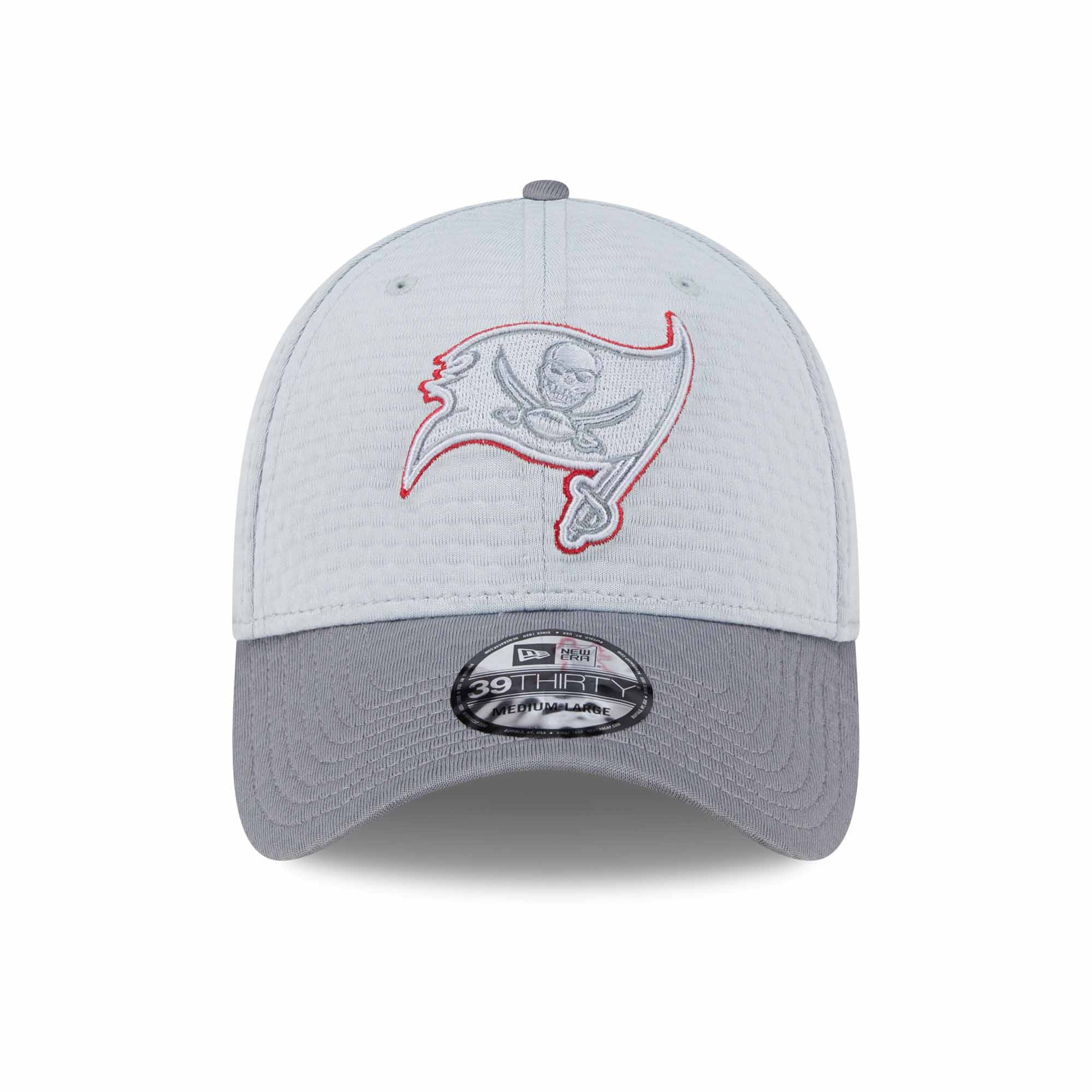 New Era American Football Cap deiner Tampa Bay Buccaneers im Stretch-Fit 39THIRTY Style aus der offiziellen 2024 NFL Training Camp Kollektion.