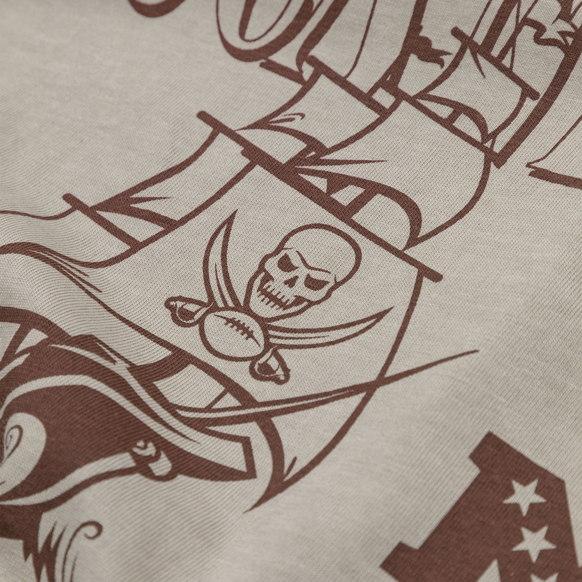 Das beigebraune T-Shirt in Stückfärbung kommt mit einem großflächigen, bräunlichen Buccaneers Backprint inklusive Classic Logo daher. Der Buccaneers Banner-Print auf der linken Brust und das Canvas Weblabel auf Taillenhöhe machen den Retro-Look komplett.