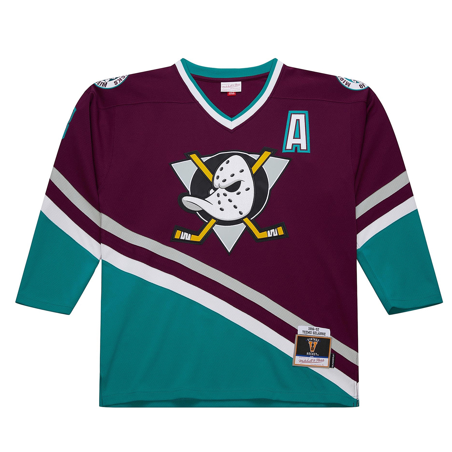 Mitchell & Ness NHL Herren Power Play Eishockey Trikot von Anaheim Mighty Ducks Legende Teemu Selanne aus der Saison 1996-97.