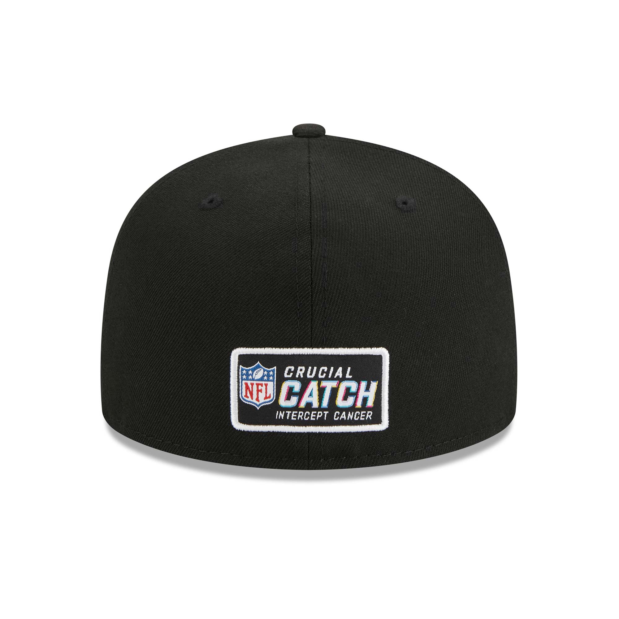 Unterstütze den weltweiten Kampf gegen Krebs mit der offiziellen New Era 2023 NFL Crucial Catch On-Field Kappe. Diese Fitted NFL Cap wird während der 2023/24 Crucial Catch Kampagne an den NFL-Seitenlinien getragen. Die schwarze Cap ist auf der Vorderseite hochwertig mit dem bunten Tennessee Titans Teamlogo bestickt. Die Rückseite ist mit dem CRUCIAL CATCH - INTERCEPT CANCER Patch bestickt. Abgerundet wird dieses einmalige Design mit der bunten Schirmunterseite.