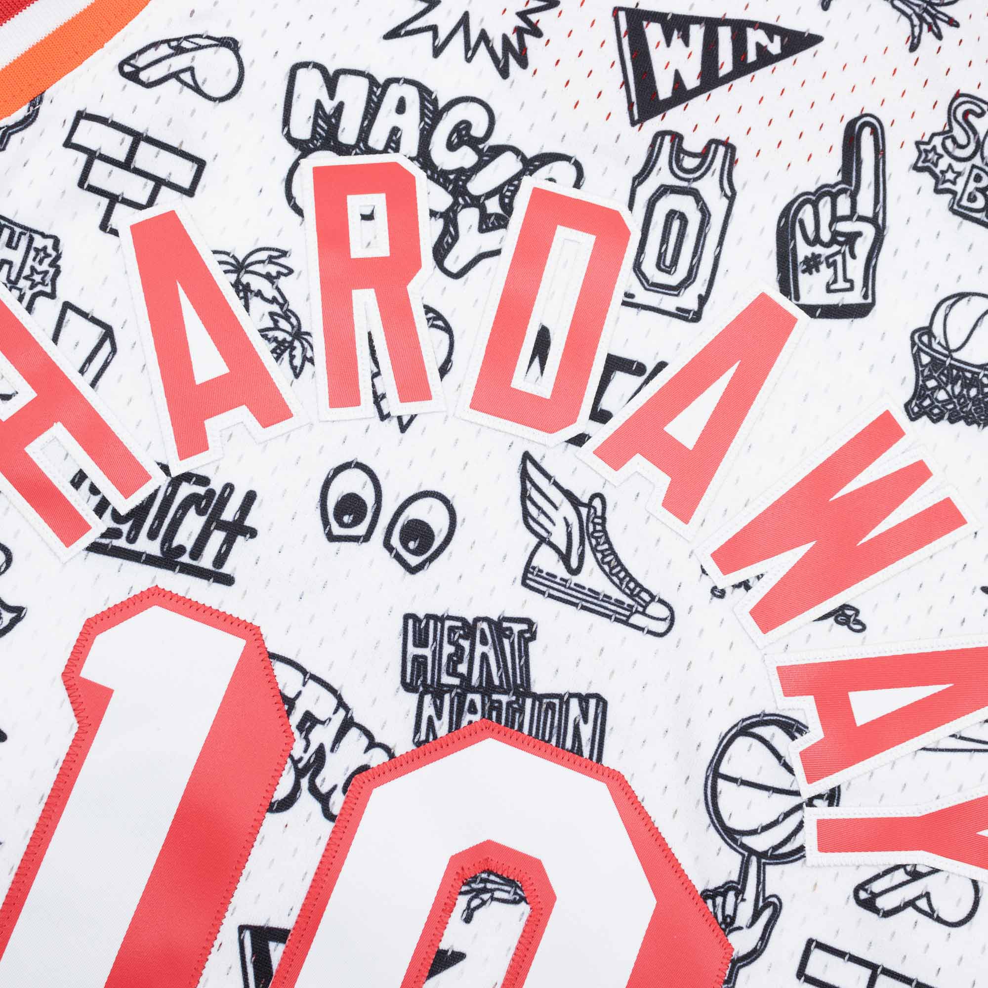 Mitchell & Ness Swingman Special Limited Edition: NBA Doodle Collection. Sichere dir diese einmalige Swingman Auflage im außergewöhnlichen Design. Das gesamte Trikot ist mit gekritzelten Sublimationsgrafiken im lokalen Miami Heat Teamdesign dekoriert: Heating Up, MIA und mehr. Die offiziellen Jersey-Schriftzüge, Nummern und Namen sind hochwertig aufgenäht, um dir das absolute Retro-Feeling zu geben. Das Mitchell & Ness Hardwood Classics Label am Saum ist natürlich ebenfalls aufgenäht. Das NBA Trikot aus der Swingman Special Edition Collection ist ein Must-Have für jeden ambitionierten Collector und eine Erinnerung an die besten Spieler und Legenden dieses Sports!