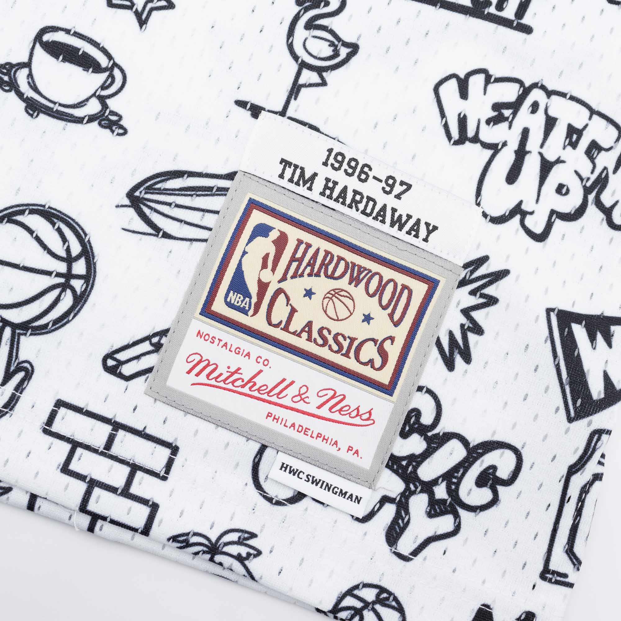 Mitchell & Ness NBA Herren Basketball Swingman Trikot von Miami Heat Legende Tim Hardaway in der NBA Doodle Limited Edition.