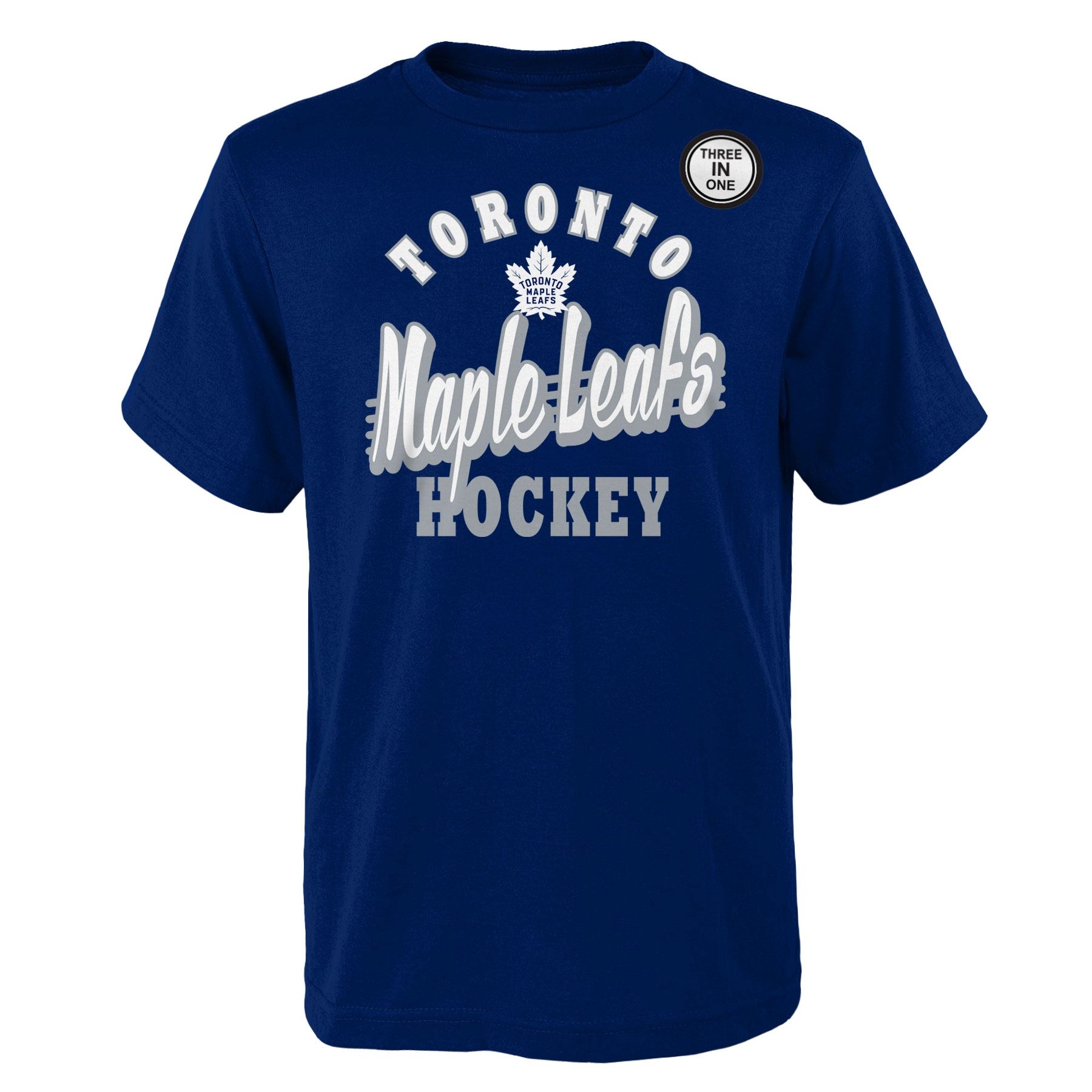 Outerstuff NHL Youth 3-in-1 Combo Shirt Set für Kinder und Jugendliche von den Toronto Maple Leafs. Das Set besteht aus einem T-Shirt und einem Long Sleeve.