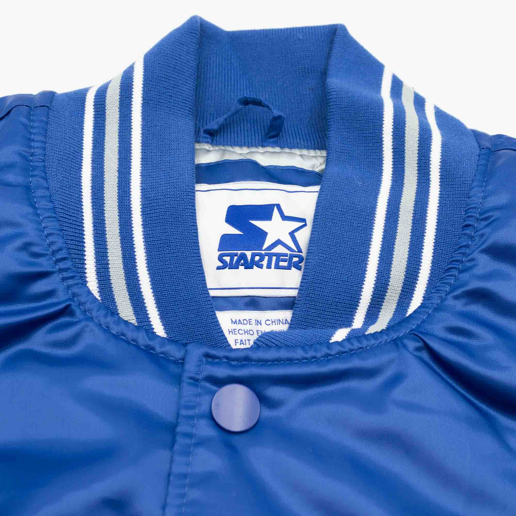 Mit der Enforcer Starter Varsity Satin Jacket sorgst du für eindeutigen Leafs Team-Support. Mit den komplett aufgestickten Teamapplikationen und den farblich abgesetzten Ärmeln ist die Jacke ein echter Hingucker. Auf der linken Brust ist das Toronto Maple Leafs Teamlogo hochwertig aufgestickt. Abgerundet wird das einmalige Starter-Design mit dem offiziellen NHL Shield in den Teamfarben auf dem rechten Ärmel. Das legendäre Starter Logo befindet sich auf dem linken Ärmel als hochwertiger Stick, sowie im Kragen und auf der Innentasche als aufgenähtes Label.
