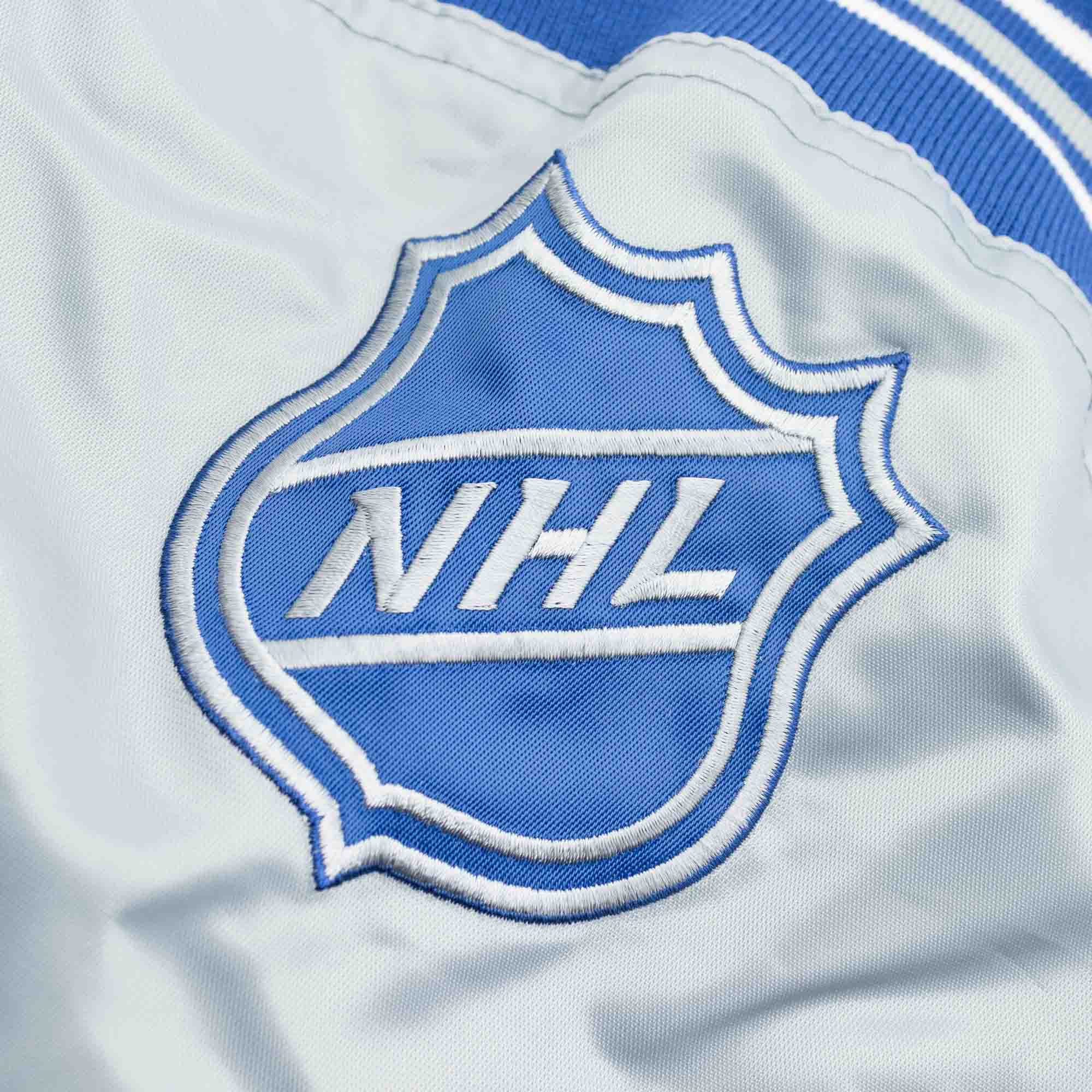 Starter NHL Herren Varsity Satin Jacke im zweifarbigen Enforcer Style deiner Toronto Maple Leafs.