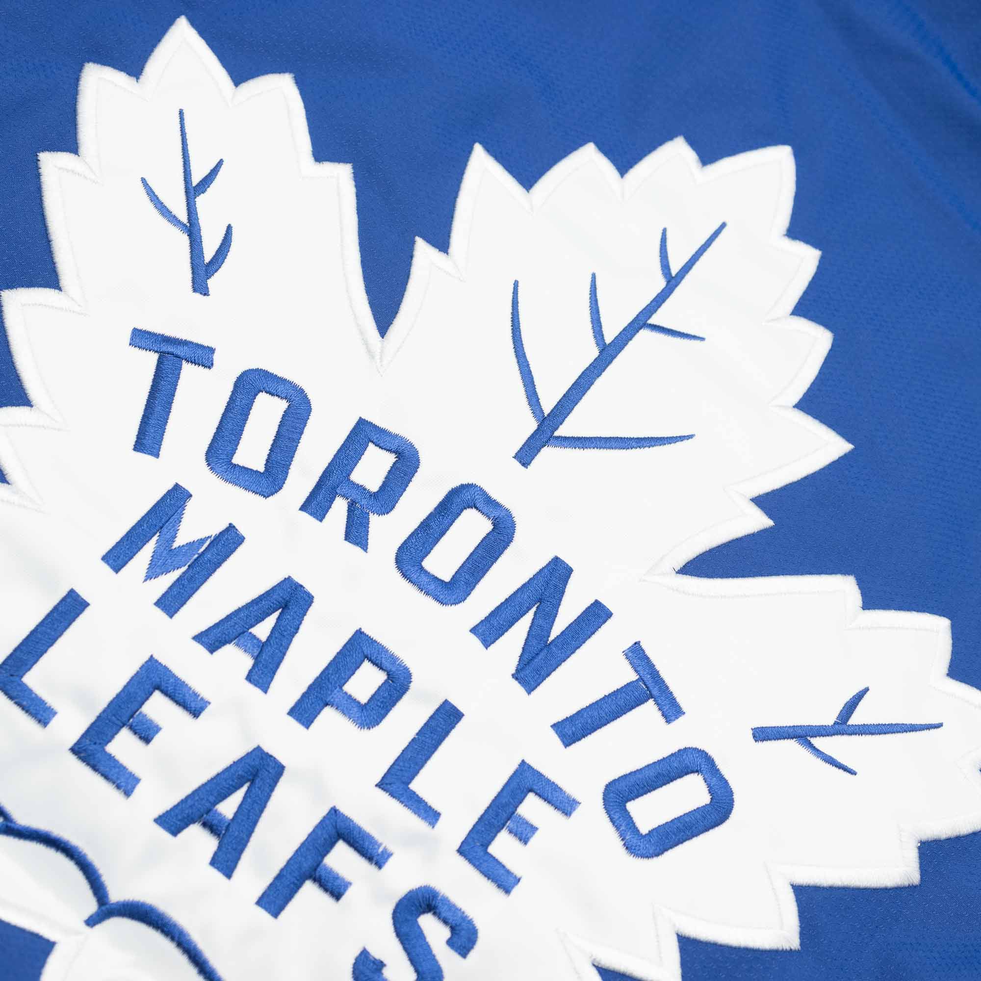 Die gefütterte Winterjacke kommt im klassischen US-Sportdesign und überzeugt mit den komplett aufgestickten Teamapplikationen und den Team-Ärmelstreifen. Die Front der Jacke prägt der MAPLE LEAFS Schriftzug sowie das gestickte Teamlogo auf der Brust. Die Rückseite ziert das übergroße Toronto Maple Leafs Teamlogo in absolut hochwertiger Verarbeitung. Abgerundet wird das einmalige NHL-Design mit dem Gründungsdatum auf dem rechten Ärmel.