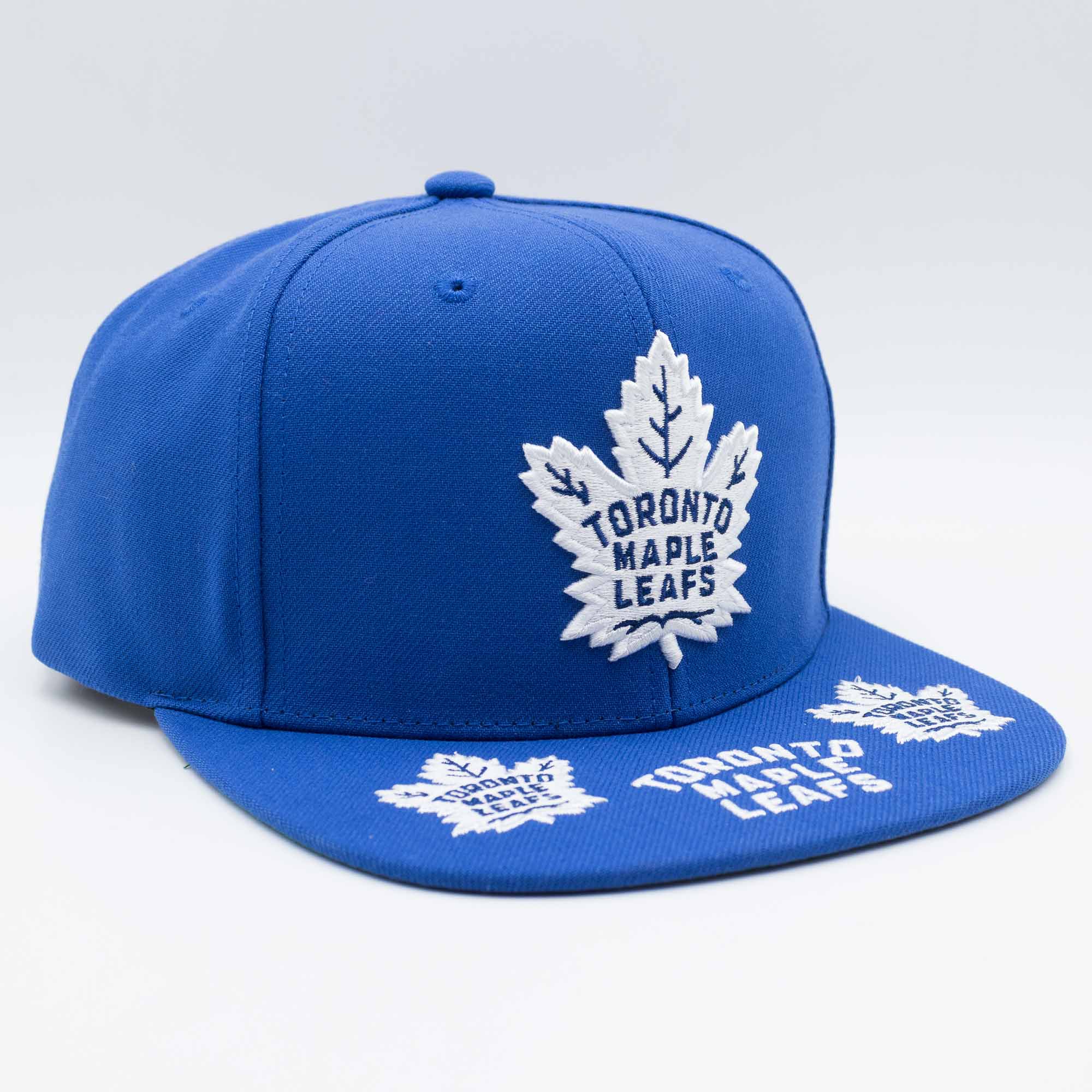 Mitchell & Ness NHL Original Fit Eishockey Snapback Cap von deinen Toronto Maple Leafs im Hat Trick Visor Decoration Design.