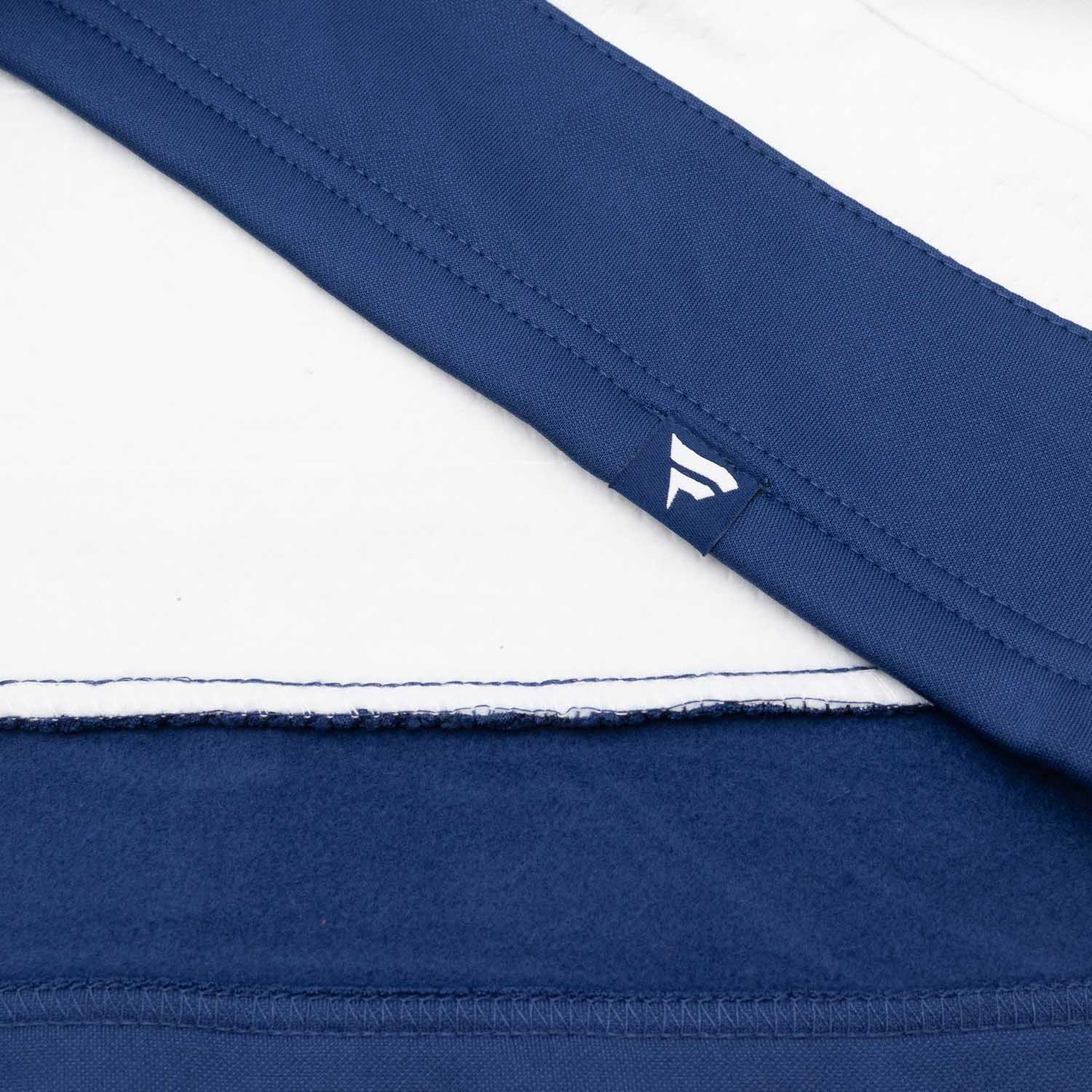 - Aufgenähte Streifen: Authentische, aufgenähte Streifen an Ärmeln und Bund im klassischen NHL-Jersey-Look.