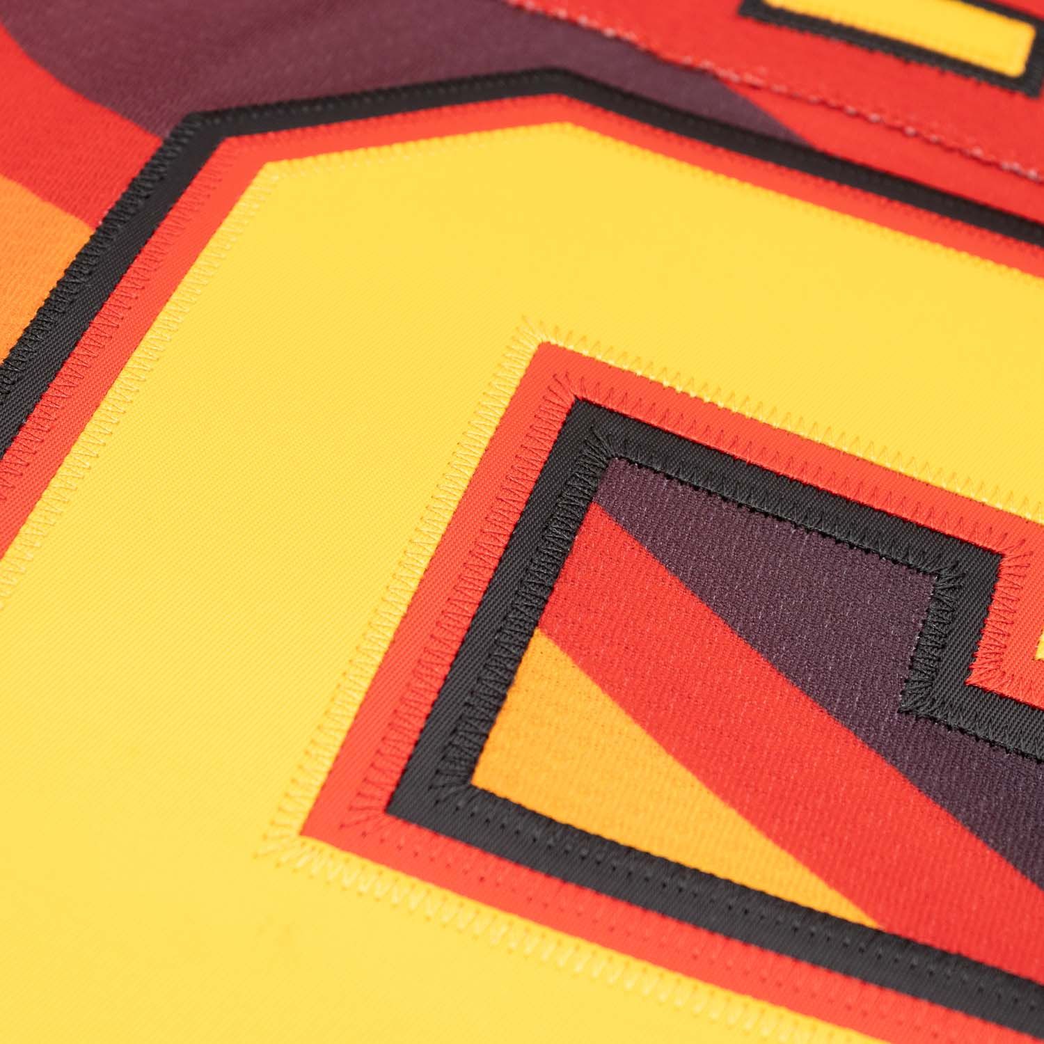 - Dreilagig aufgenähte Rücken- und Ärmelnummern sowie Captain's C.