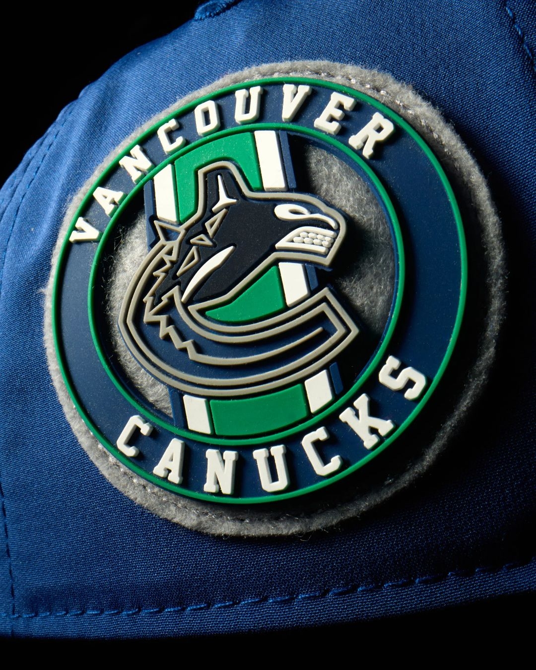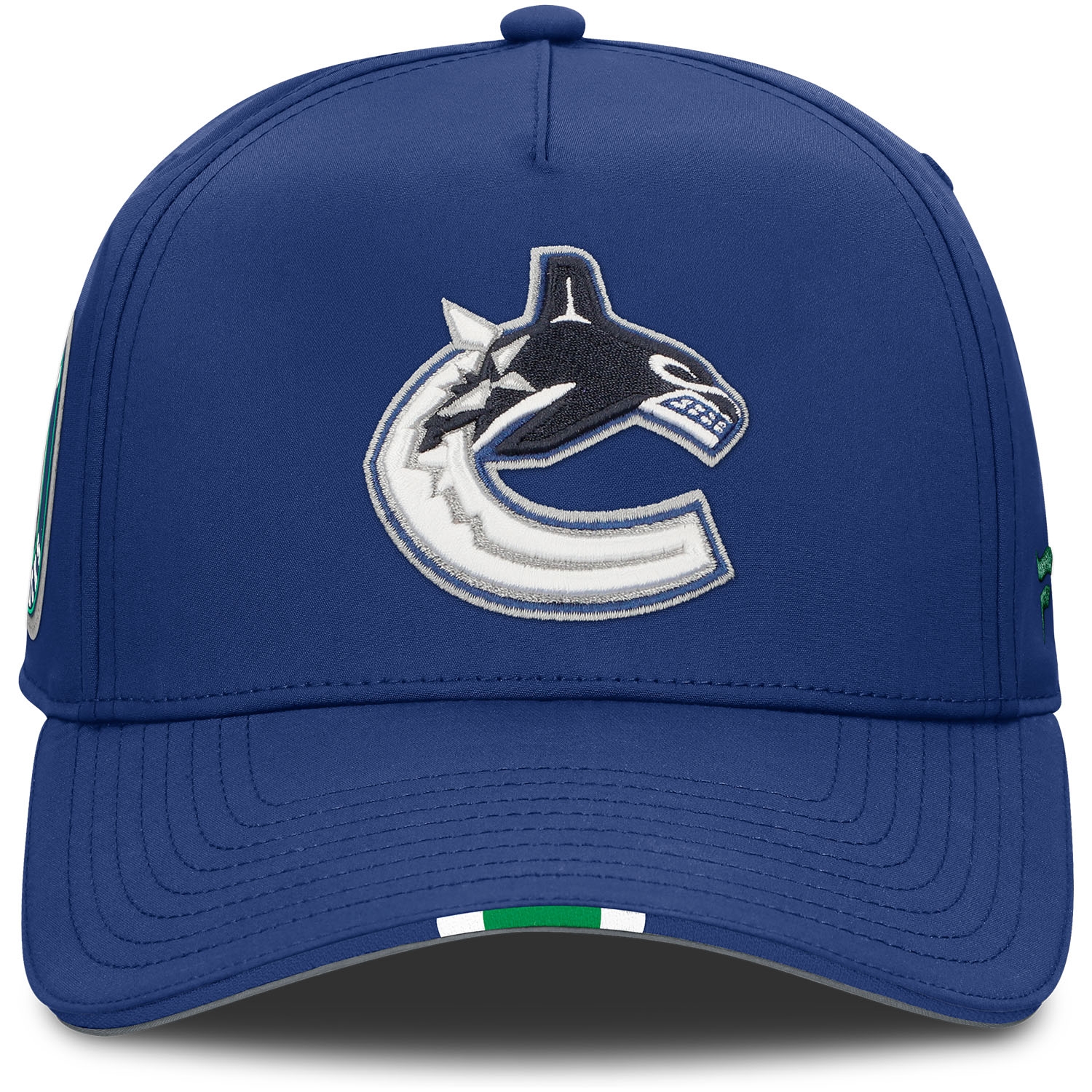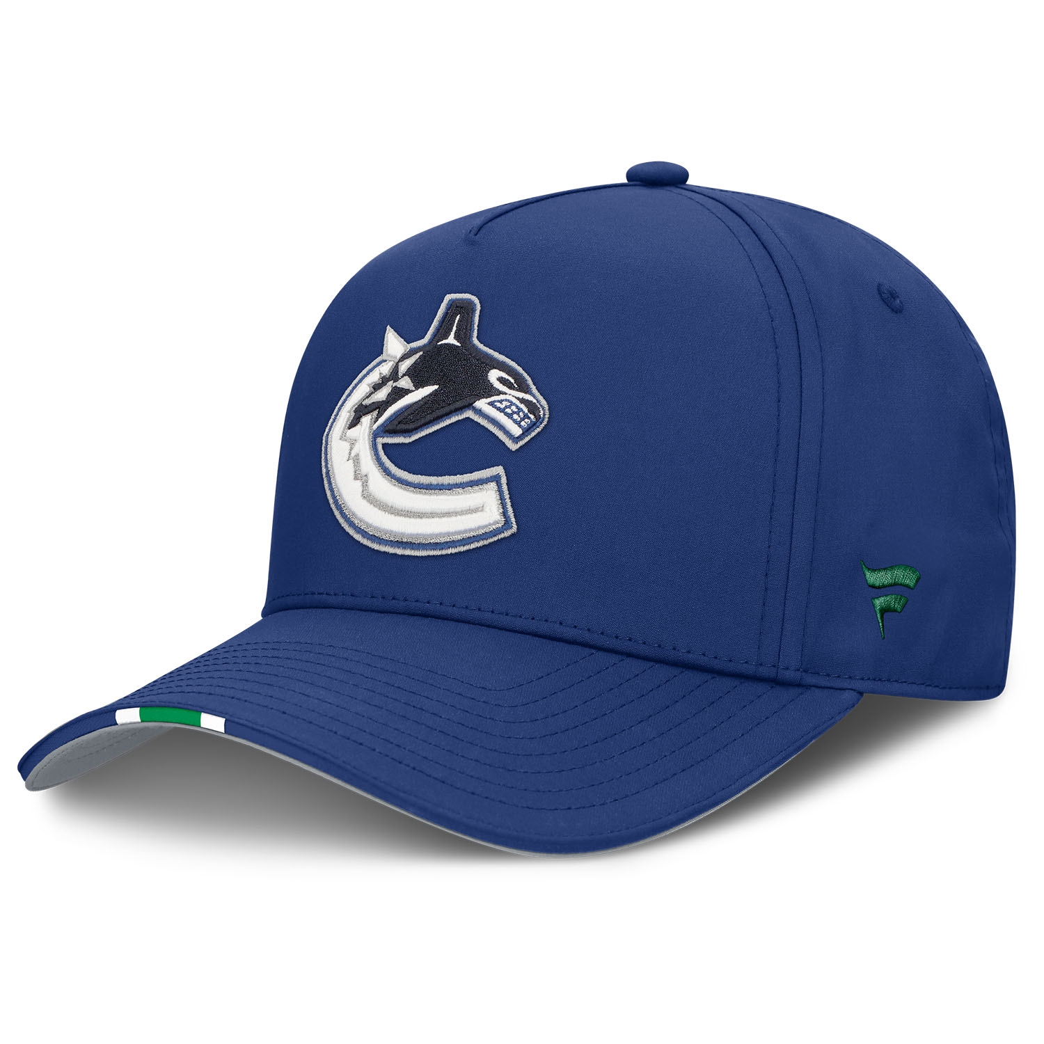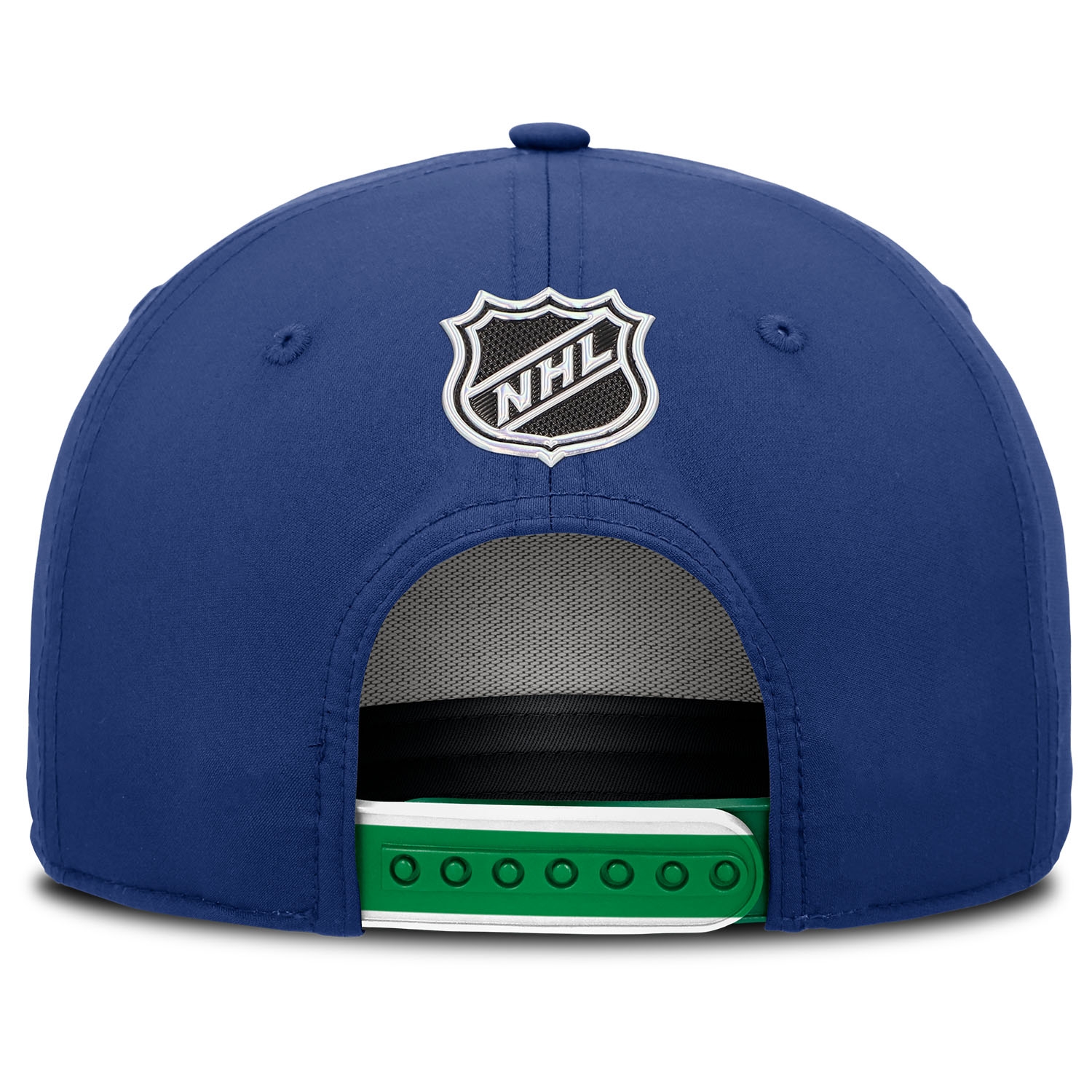Fanatics Eishockey Adjustable Snapback Cap von deinen Vancouver Canucks im offiziellen On-Stage Podium 2025 NHL Draft Design.