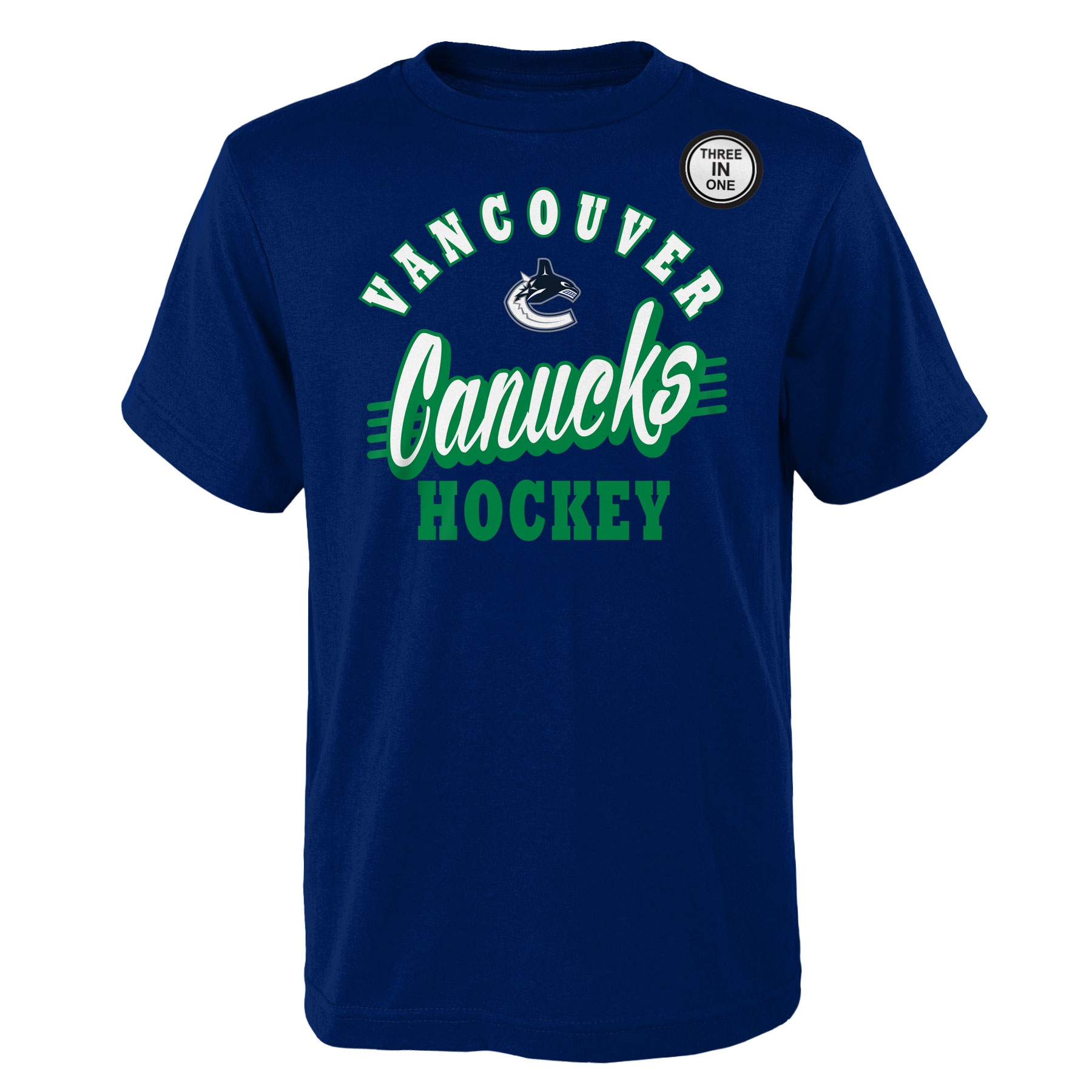 Outerstuff NHL Youth 3-in-1 Combo Shirt Set für Kinder und Jugendliche von den Vancouver Canucks. Das Set besteht aus einem T-Shirt und einem Long Sleeve.