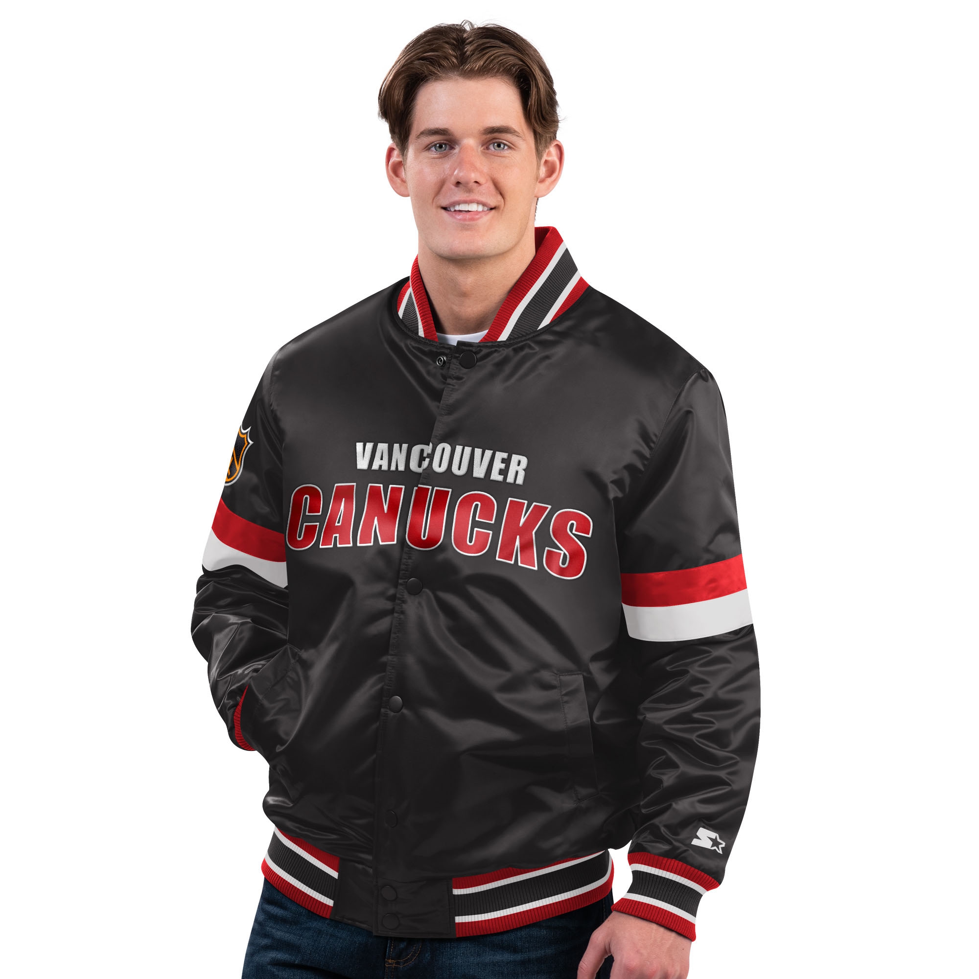 Starter NHL Herren Varsity Satin Jacke im klassischen Diveplay Style deiner Vancouver Canucks.