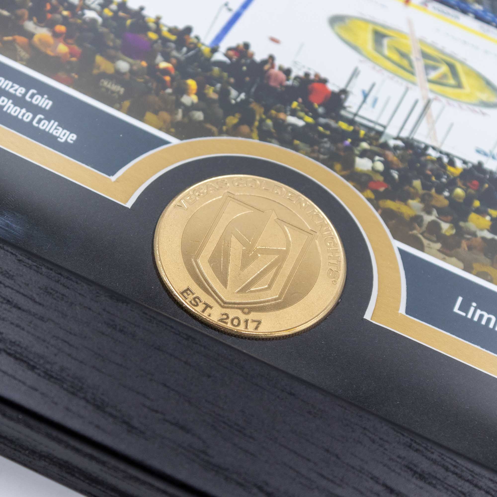Highland Mint NHL gerahmtes Bild vom deinen Vegas Golden Knights mit Stadionhintergrund, geprägter Bronzemünze und Stanley Cup Championships.