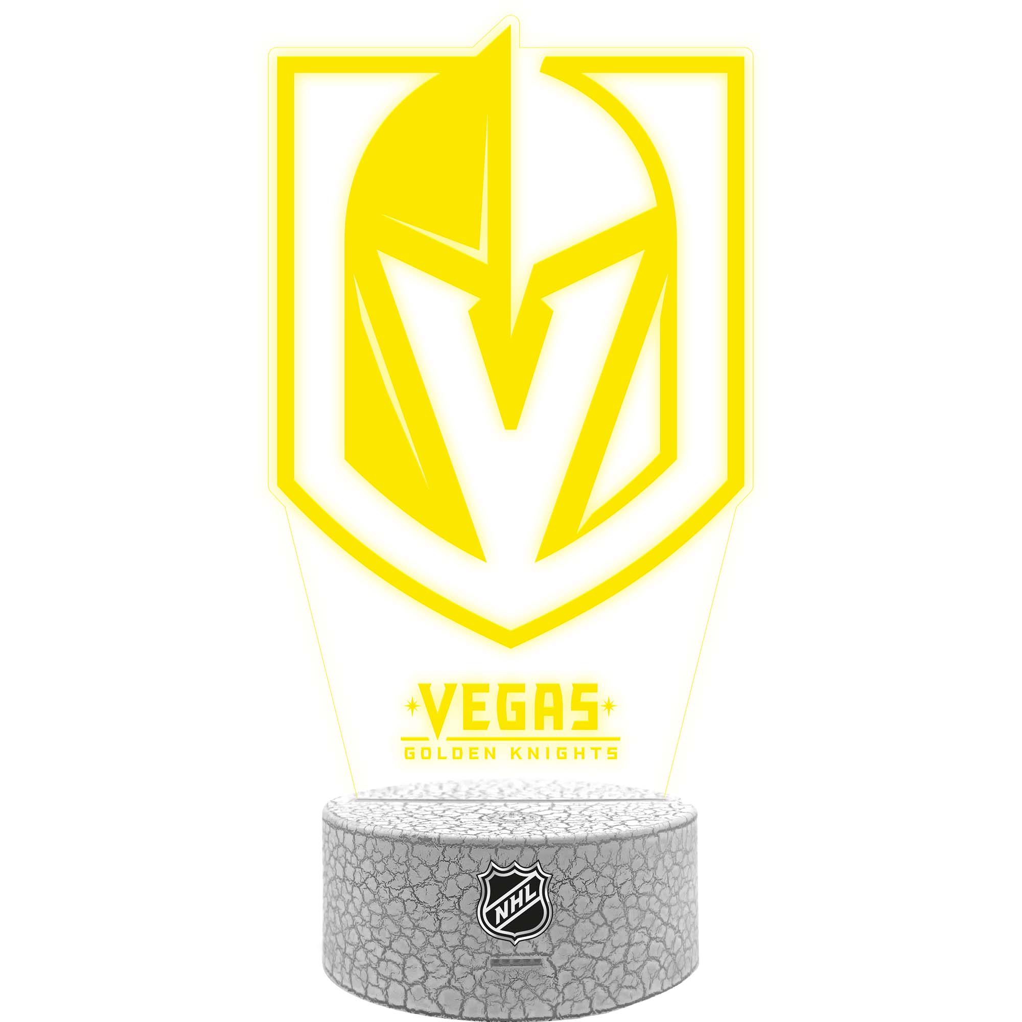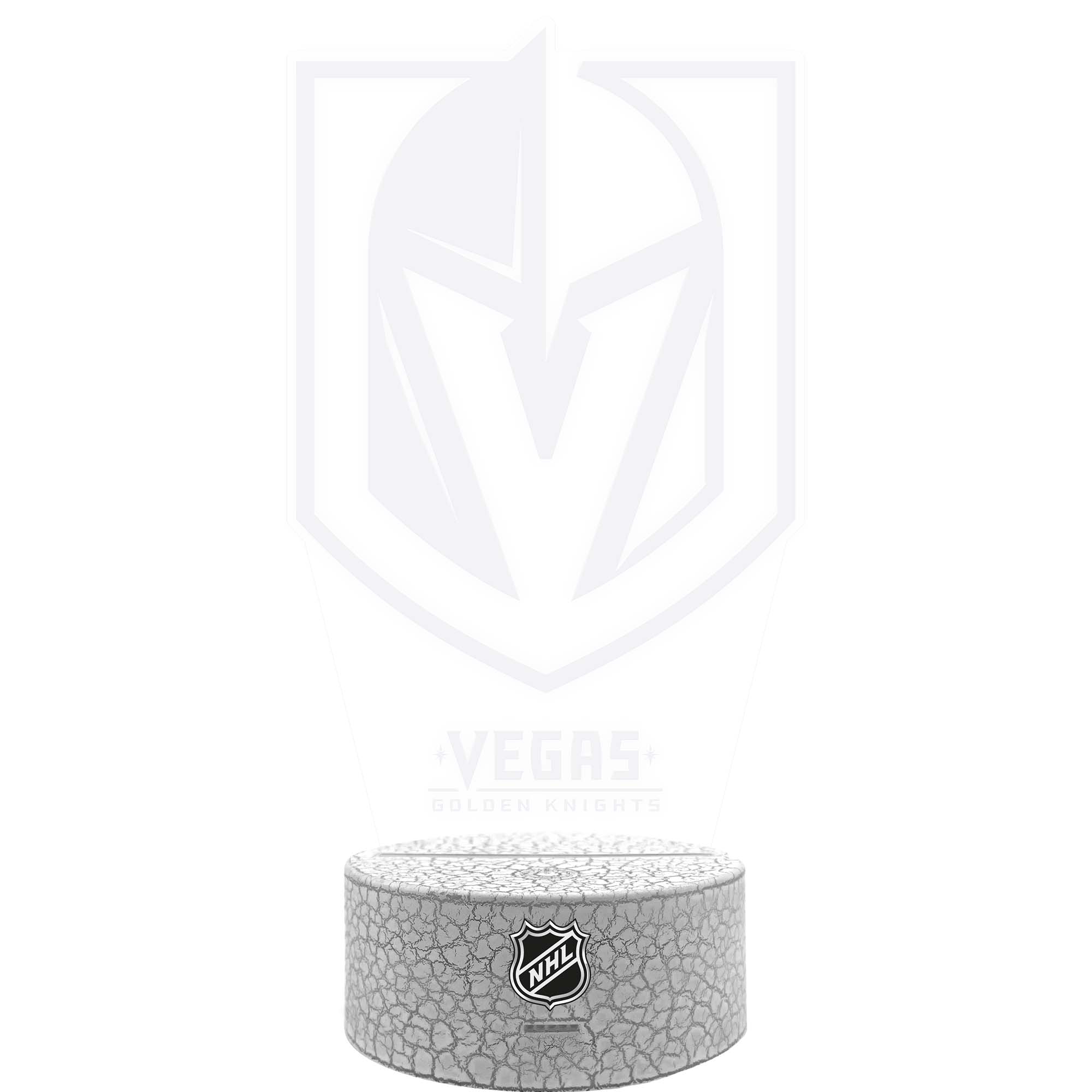 Das LED Team Logo Schild lässt alle NHL-Augen aufleuchten! Das lasergravierte Acrylschild kommt im authentischen Eishockey Design inklusive Vegas Golden Knights Team Logo. Das Leuchtschild wird einfach mit der mitgelieferten NHL-Base zusammengesteckt und kann mit der Multi-Color LED in zwei verschiedenen Farben zum Leuchten gebracht werden. Du kannst deine Lieblingsfarbe einstellen oder einen durchlaufen Farbwechsel einstellen. Mit USB-Anschluss und der zusätzlichen Batteriefunktion kann das Leuchtschild einfach und praktisch eingesetzt werden. Aber auch unbeleuchtet macht das Schild richtig was her und sollte in keinem NHL-Fancave fehlen.