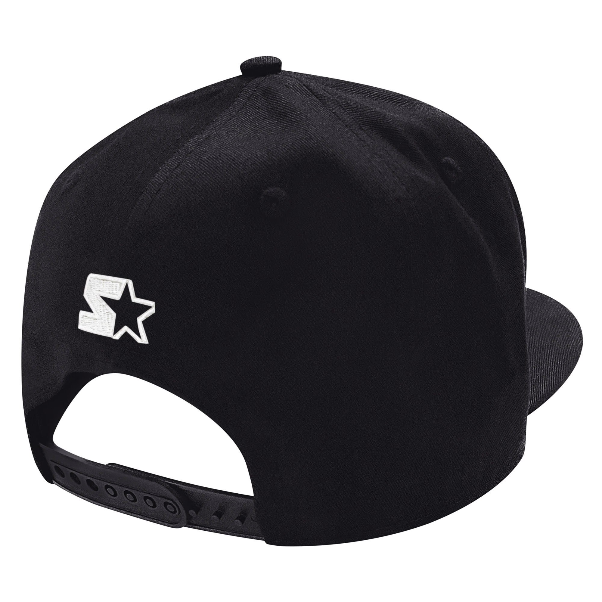 Die komplett schwarze Starter Snapback Cap kommt mit einen hochwertig aufgestickten Teamnamen auf der Front. Die Buchstaben sind im 3D-Design erhöht. Als besonderes Extra wird jede Cap mit einem passenden Team Pin geliefert, den du nach Belieben an deine Cap anbringen kannst.