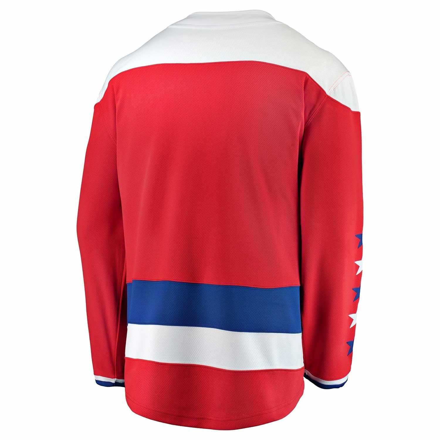 Das Washington Capitals Replica Breakaway Trikot entspricht dem original NHL-Design. Das große Washington Capitals Teamlogo auf der Vorderseite ist hochwertig aufgenäht. Zusätzlich sind das NHL Shield Logo und das Fanatics Tag aufgenäht.