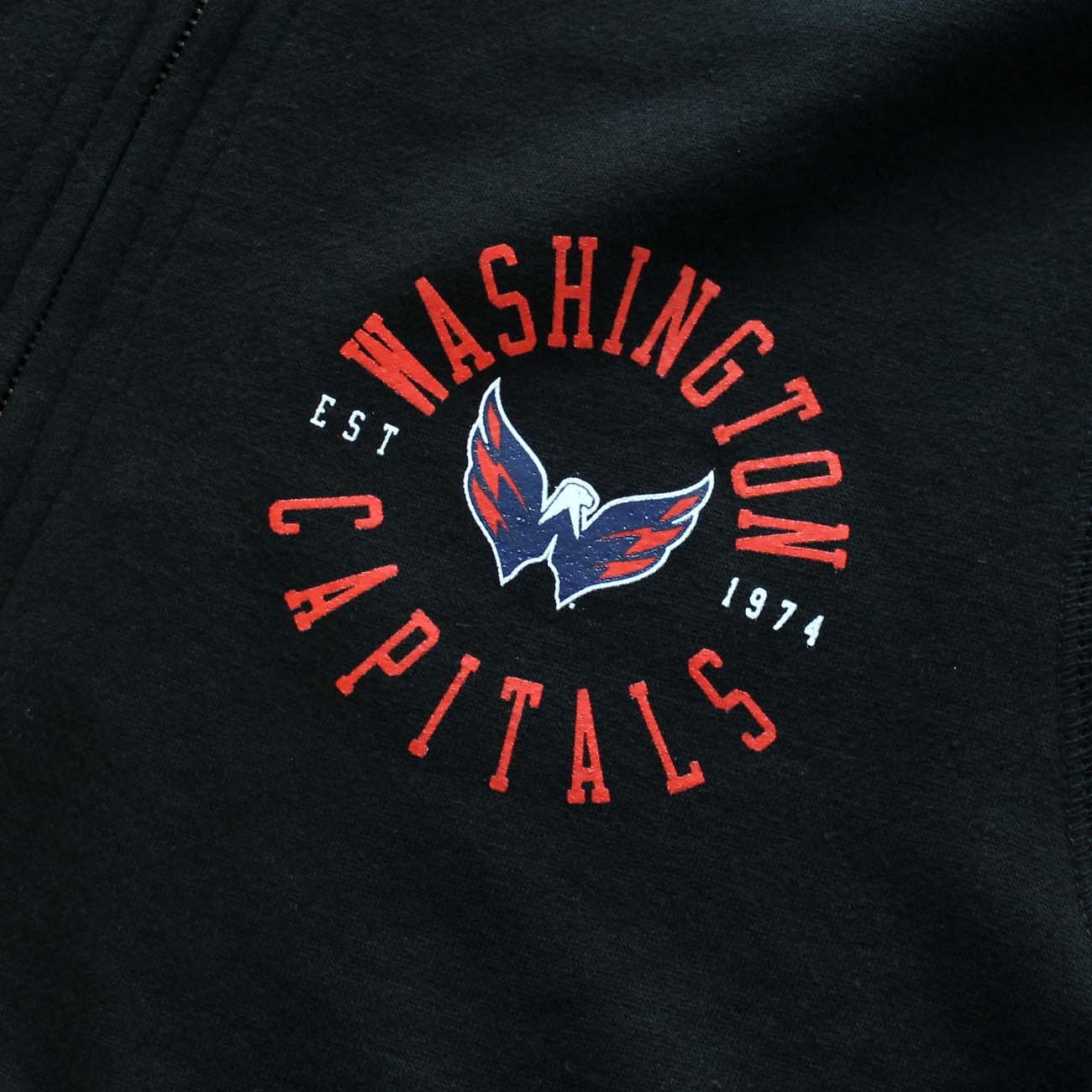 Levelwear Herren Eishockey Kapuzenpullover mit durchgehenden Reißverschluss von den Washington Capitals im Line Logo Design.