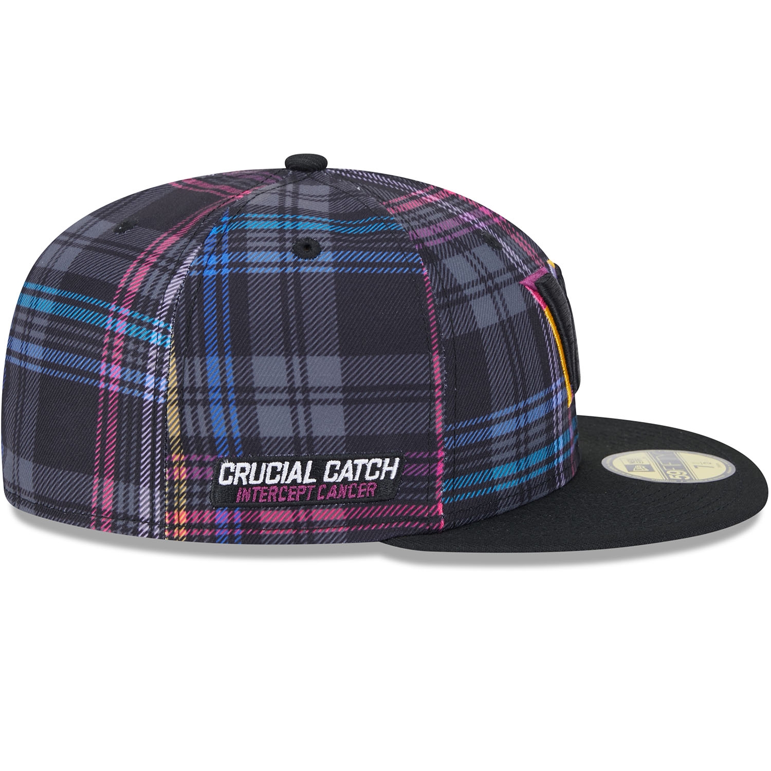 Unterstütze den weltweiten Kampf gegen Krebs mit der offiziellen New Era 2024 NFL Crucial Catch On-Field Kappe. Diese geschlossene NFL Cap wird während der 2024-25 Crucial Catch Kampagne im Oktober an den NFL-Seitenlinien getragen. Die Cap ist auf der Vorderseite hochwertig mit dem bunt abgesetzten Washington Commanders Teamlogo bestickt. Die rechte Capseite ist mit dem CRUCIAL CATCH - INTERCEPT CANCER Patch bestickt. Die Rückseite ziert das aufgestickte NFL Logo. Das Sublimierte Karo-Design auf allen sechs Panels in den typischen Crucial Catch Farben sorgt für einen einzigartigen Look.