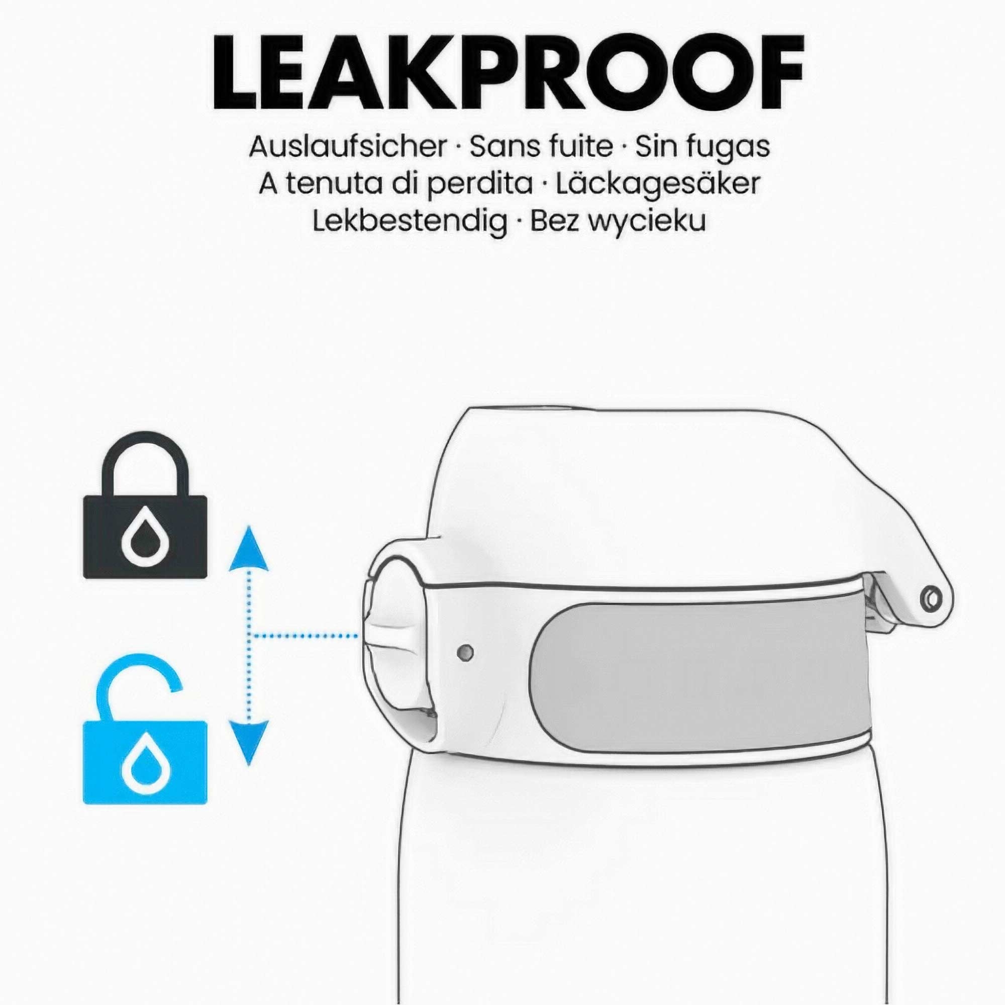 OneTouch-Flaschen verfügen über eine Belüftungsöffnung für einen reibungslosen, verschüttungsfreien Durchfluss. Der seitliche Auslauf ermöglicht eine minimale Neigung für eine perfekte Flüssigkeitszufuhr. Bei übermäßiger Neigung kann Wasser aus der Entlüftung tropfen.